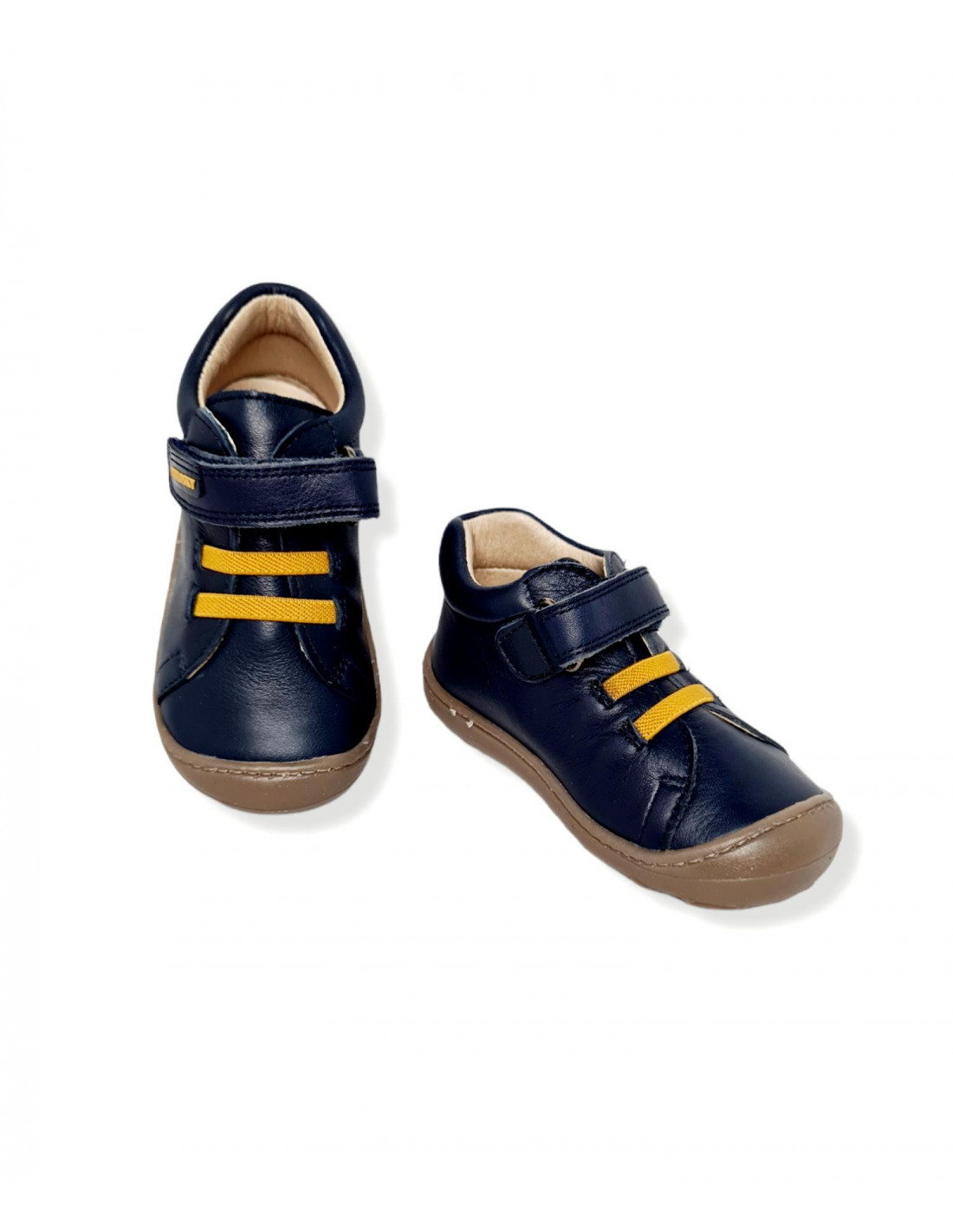Fabricado en piel natural de primera calidad que garantiza la correcta transpiración del pie y cuenta con el certificado ambiental LWG, en color azul con cordón engomado yema y cierre mediante velcro, con puntera de goma y cuello acolchado , cierre de velcro, con forro inTech (7 veces más absorbente que la piel), horma fisiológica que garantiza el correcto desarrollo del pie, plantilla extraíble anatómica, antibacterias y superabsorbente, piso de goma antideslizante que incorpora las tecnologías AIRBAG, para una mayor amortiguación en la pisada y SUPERFLEX, que favorece la flexión normal del pie. Además incorpora protectores interiores de talón y puntera con efecto ping-pong, que recuperan la posición inicial del calzado.