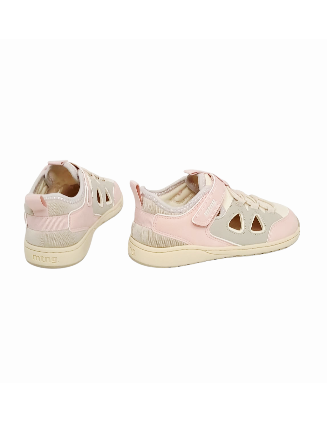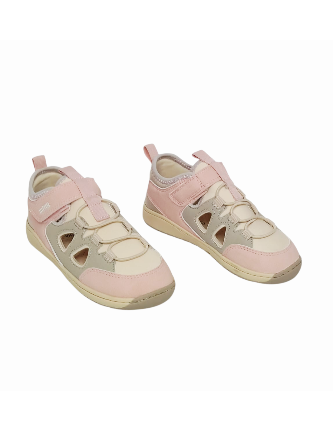 Sandalia BAREFOOT tipo cangrejera, es decir, con aberturas laterales pero cerrada tanto en la puntera como en el talón, por lo que permite que el pie vaya fresquito y protegido a la vez. Fabricada en material textil transpirable de color beige y rosa. Pertenece a la línea de calzado respetuoso, también llamado BAREFOOT, de Mustang.