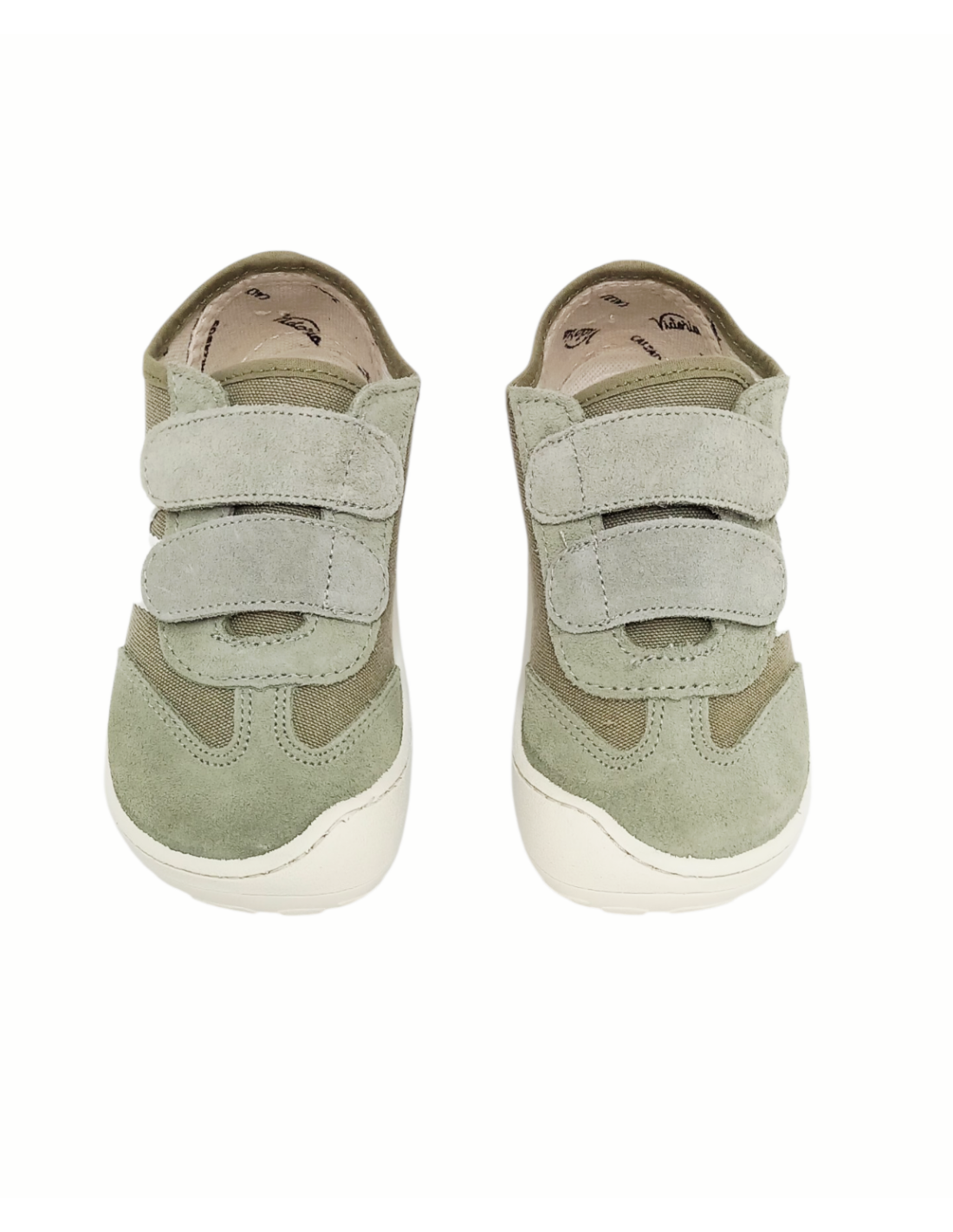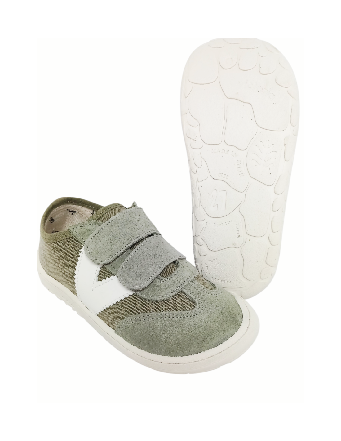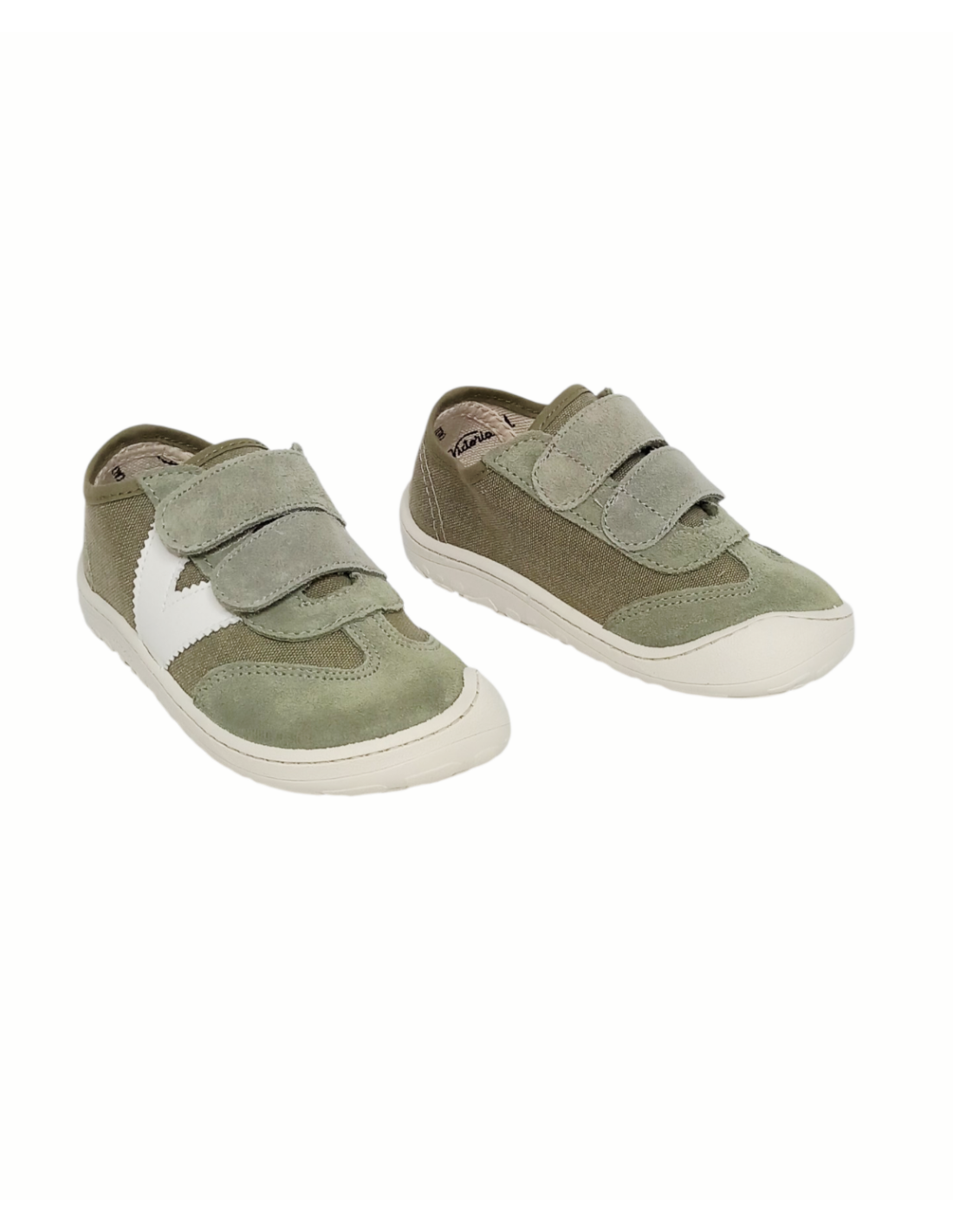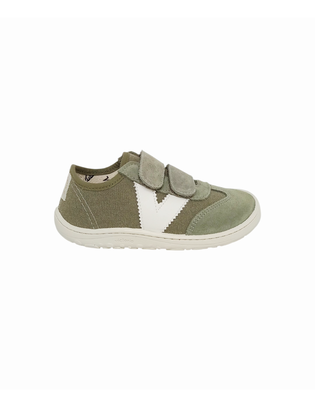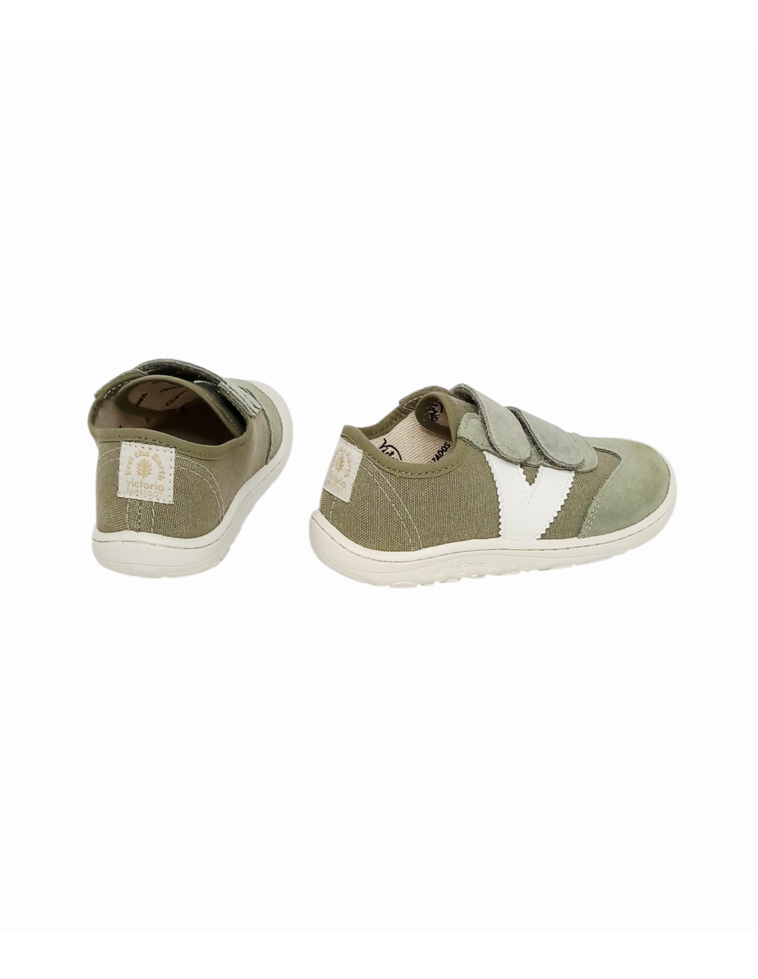 Zapatilla que combina lona y serraje en color verde kakhi de la línea de calzado respetuoso de Victoria.