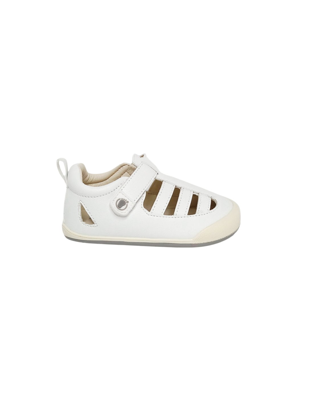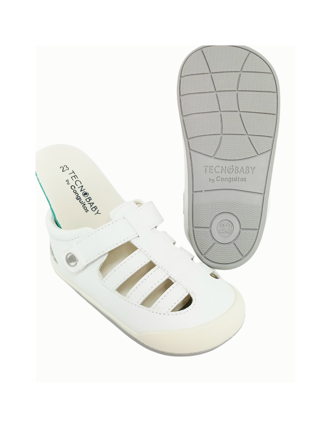 Sandalia Tecnobaby de la línea de calzado respetuoso de Conguitos en color blanco.