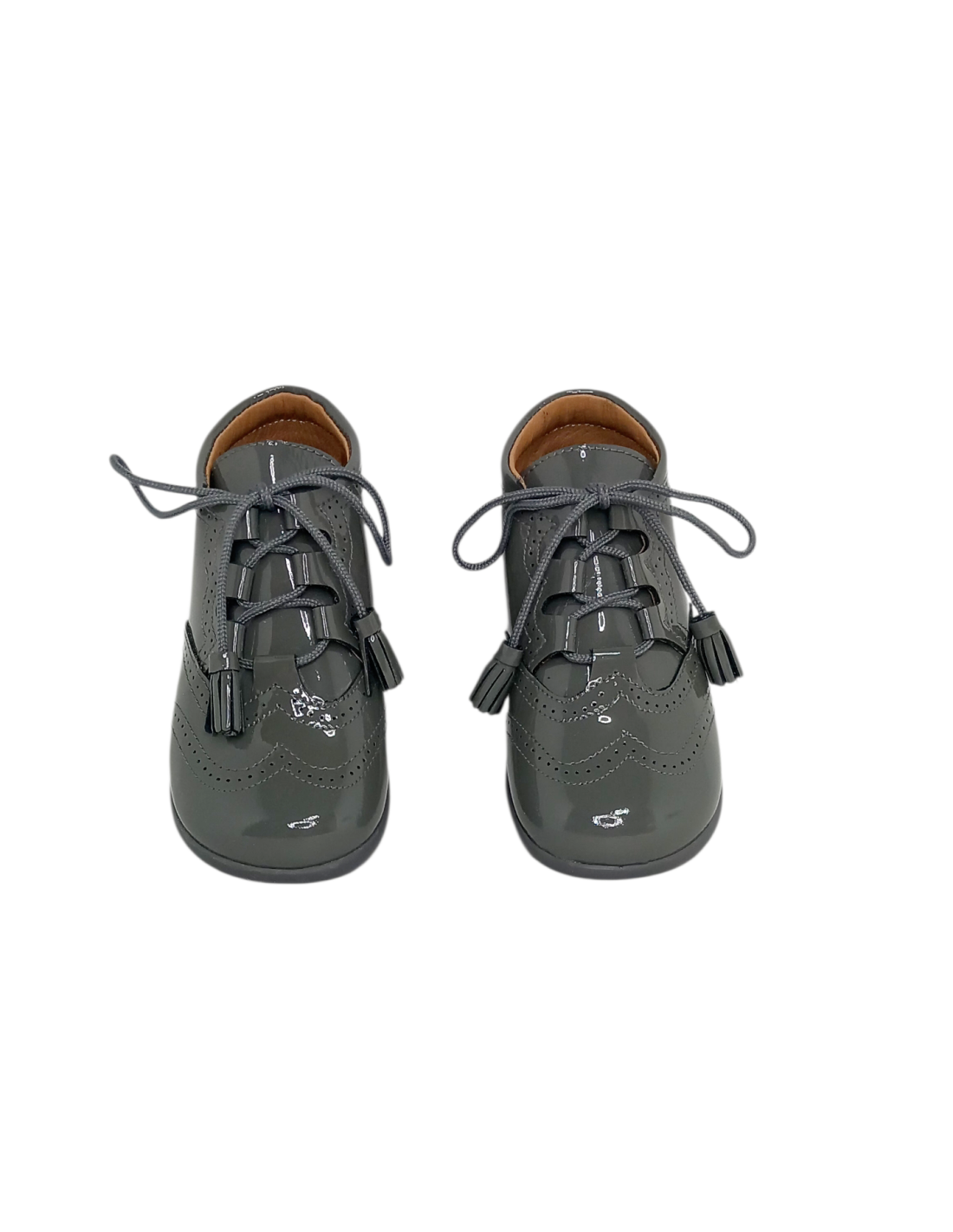 Fabricada piel charol, con detalles picados. Cuenta con plantilla y forro de piel y suela de goma.