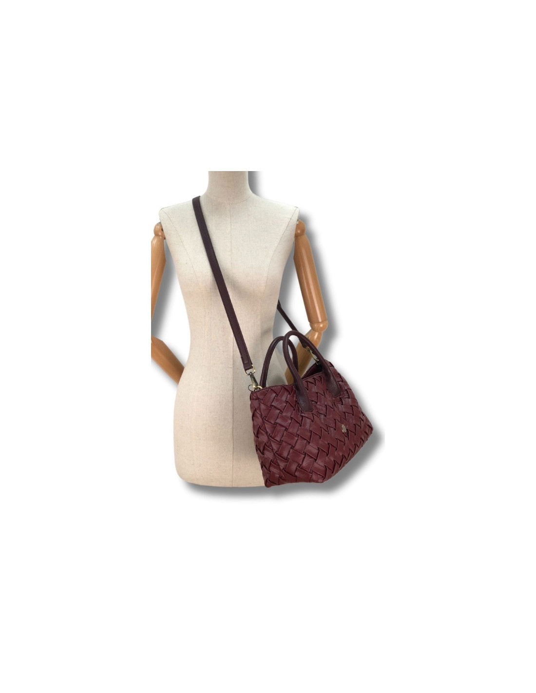 Bolso trenzado para mujer de la marca Martina K en tres combinaciones de color, verde oscuro, burdeos y negro.