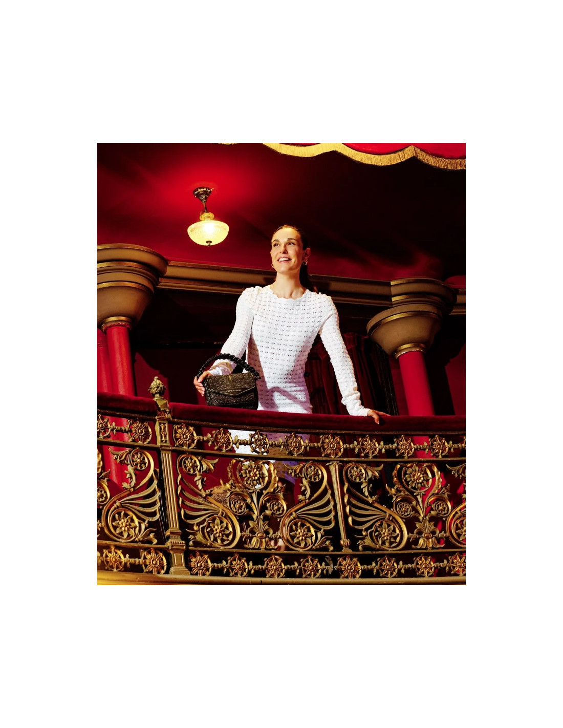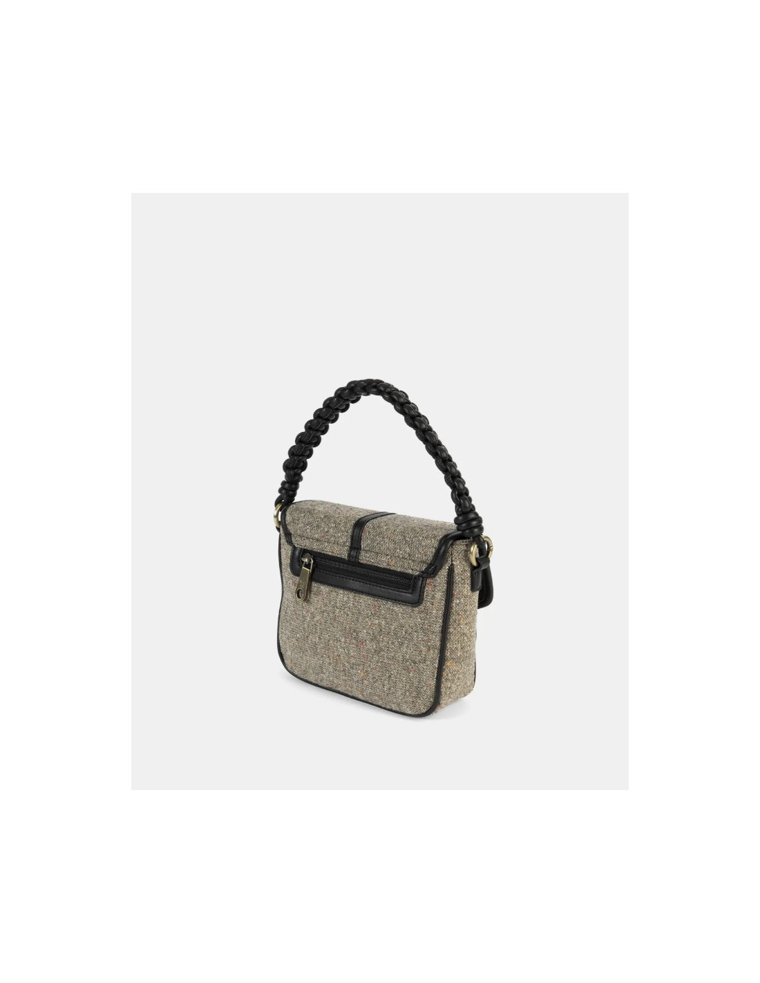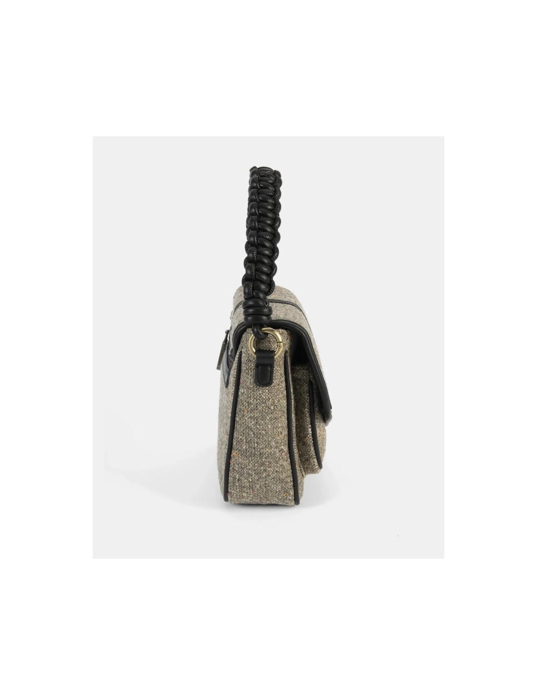 Diseño rectangular con asa de mano retorcida decorativa con opción de bandolera.