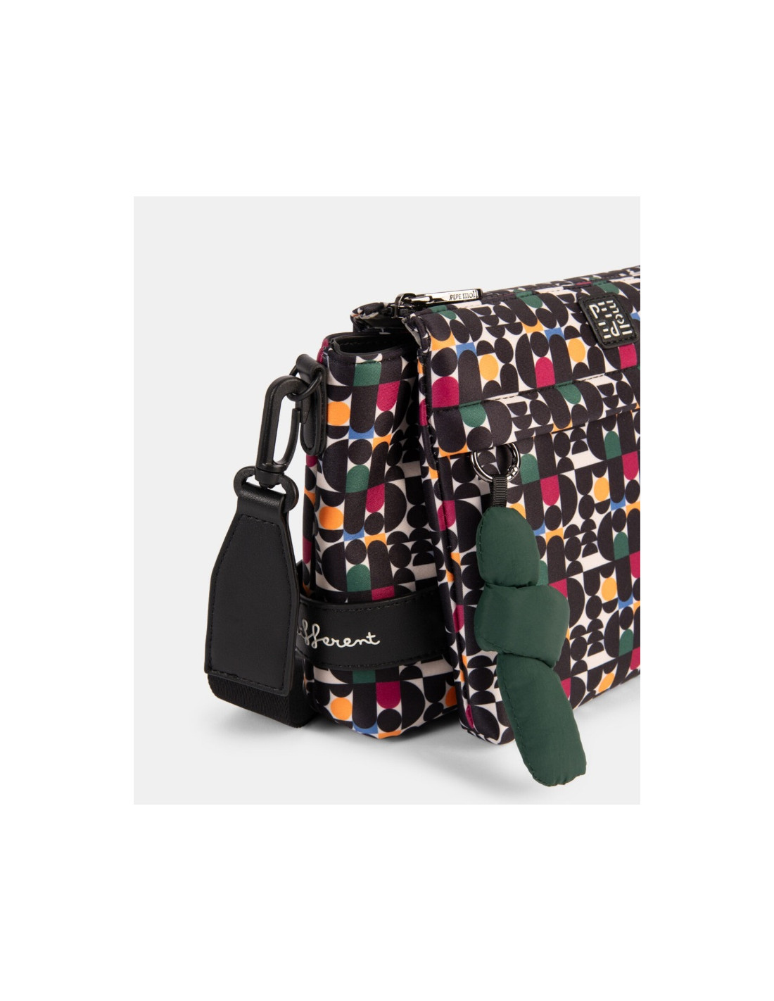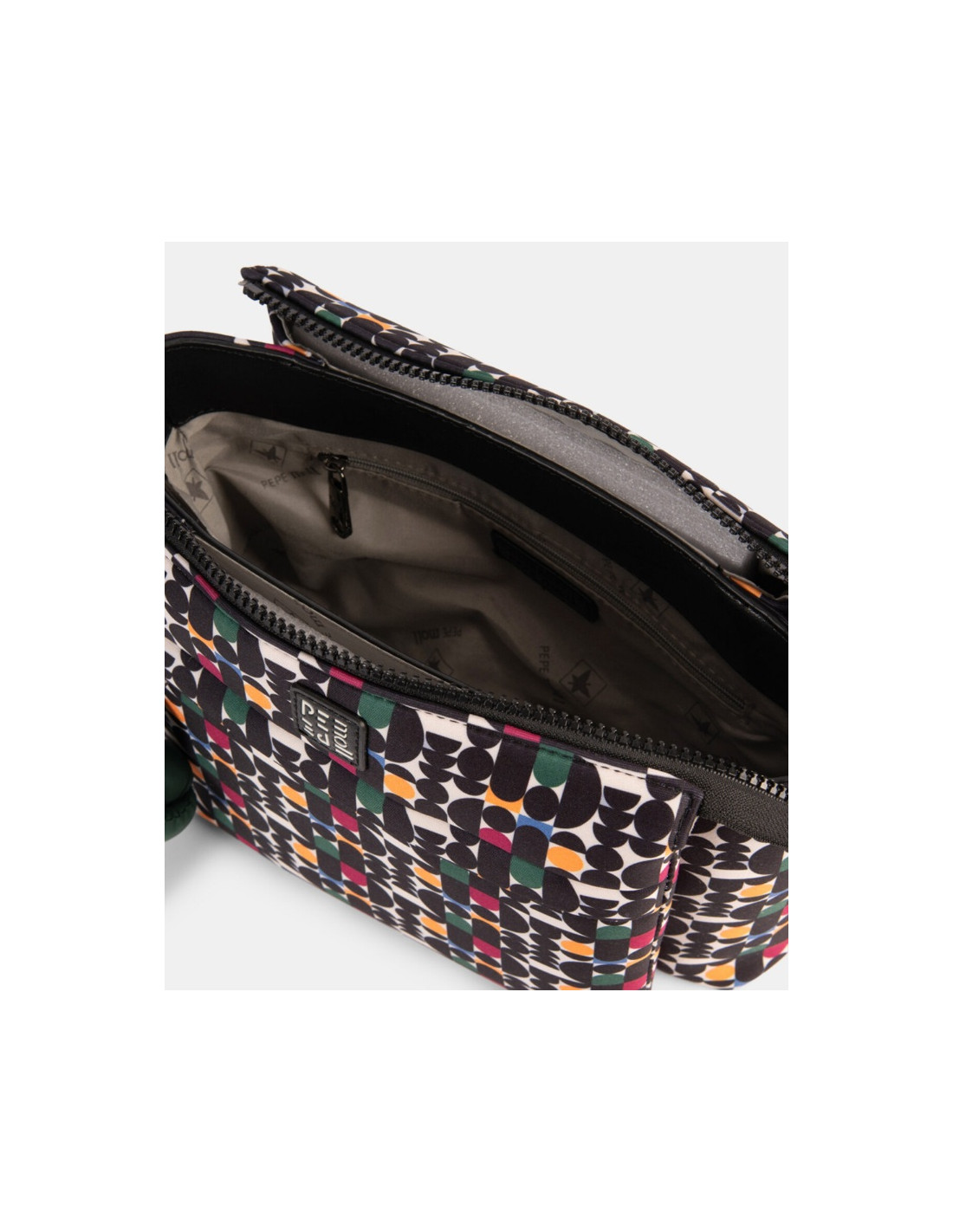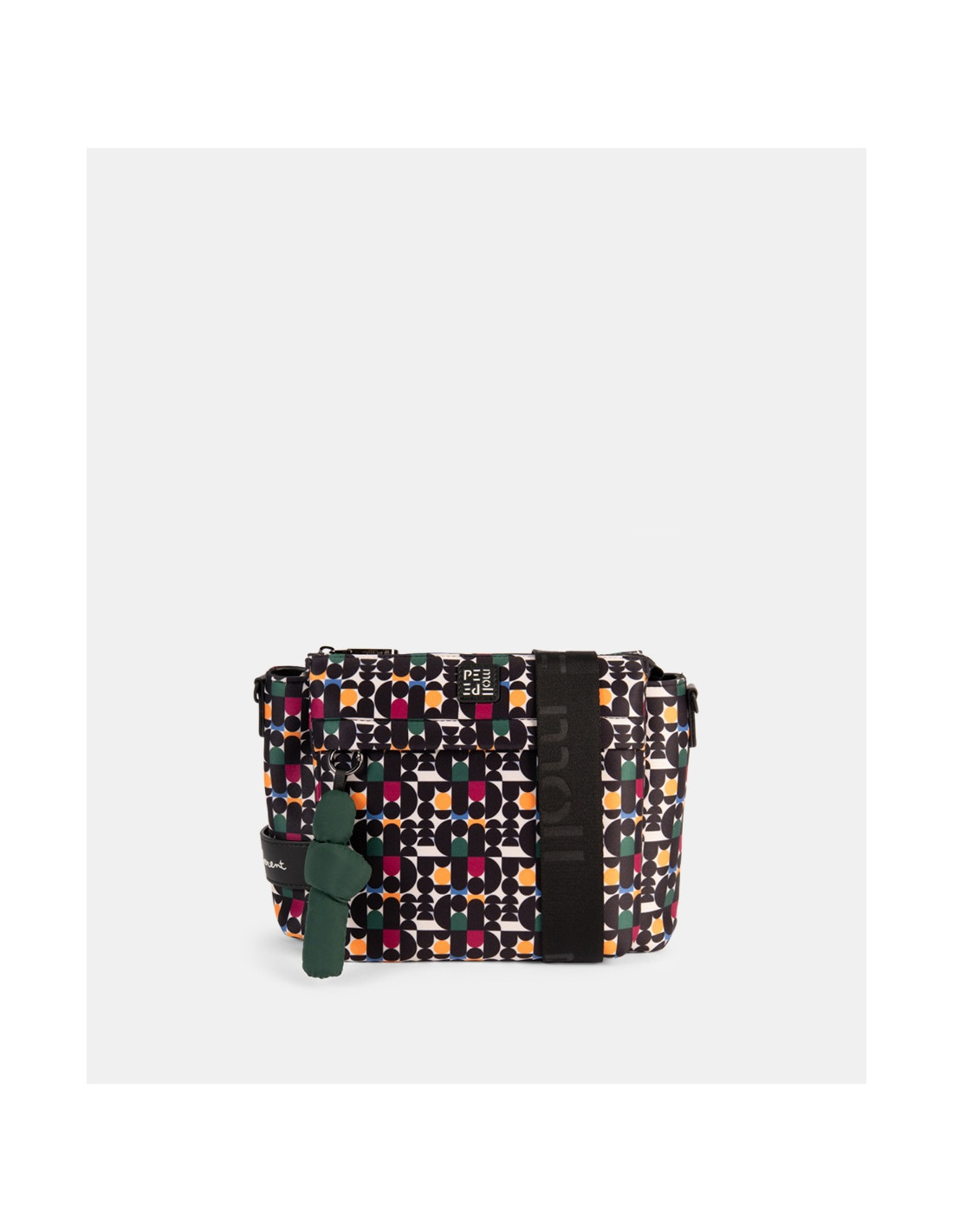 Bolso estilo bandolera para mujer de la marca Pepe Moll en un estampado gráfico que no pasa desapercibido.