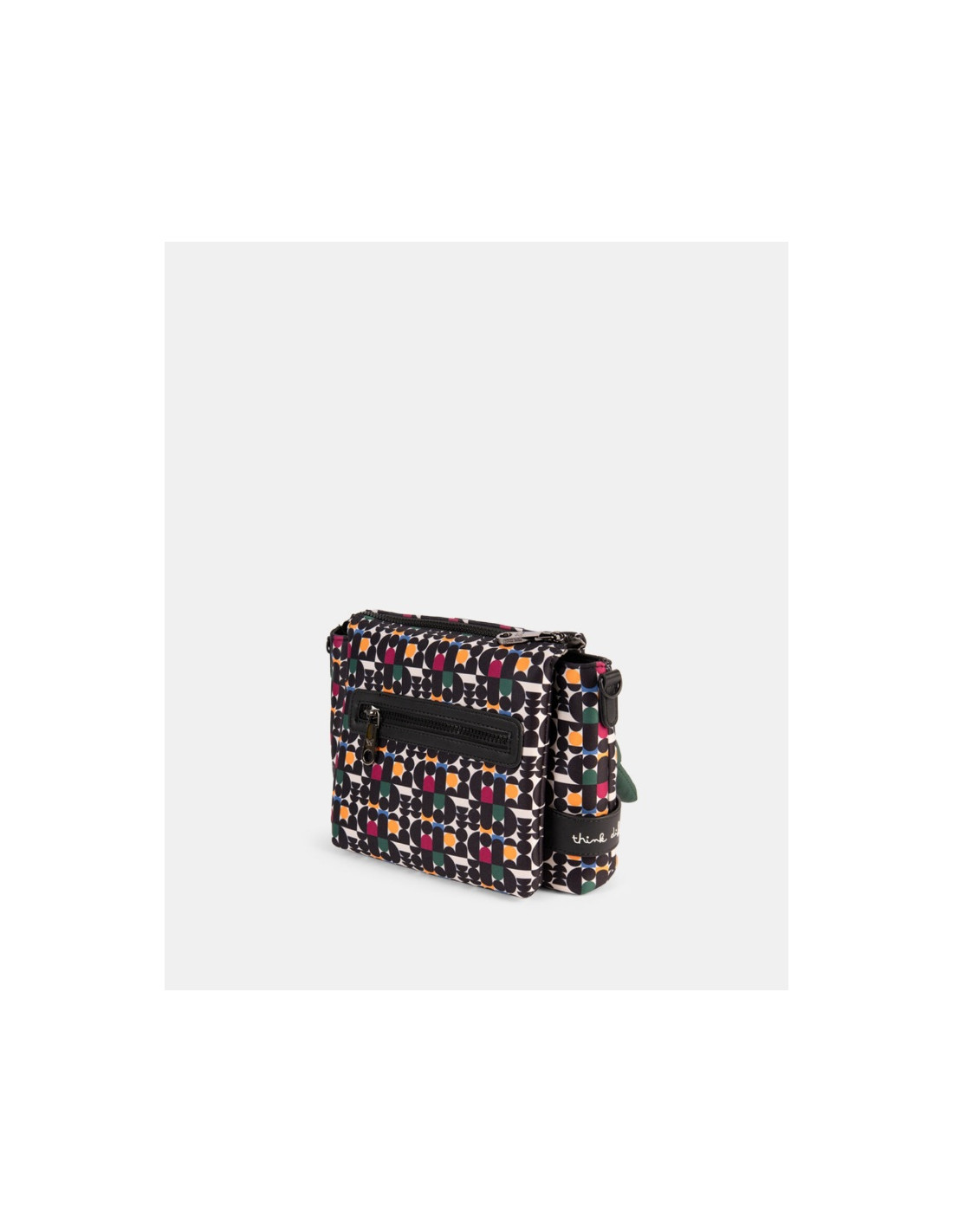 Su diseño rectangular y práctico lo hace perfecto para llevar lo esencial sin renunciar al estilo. Destaca por su estampado geométrico con aire vintage.