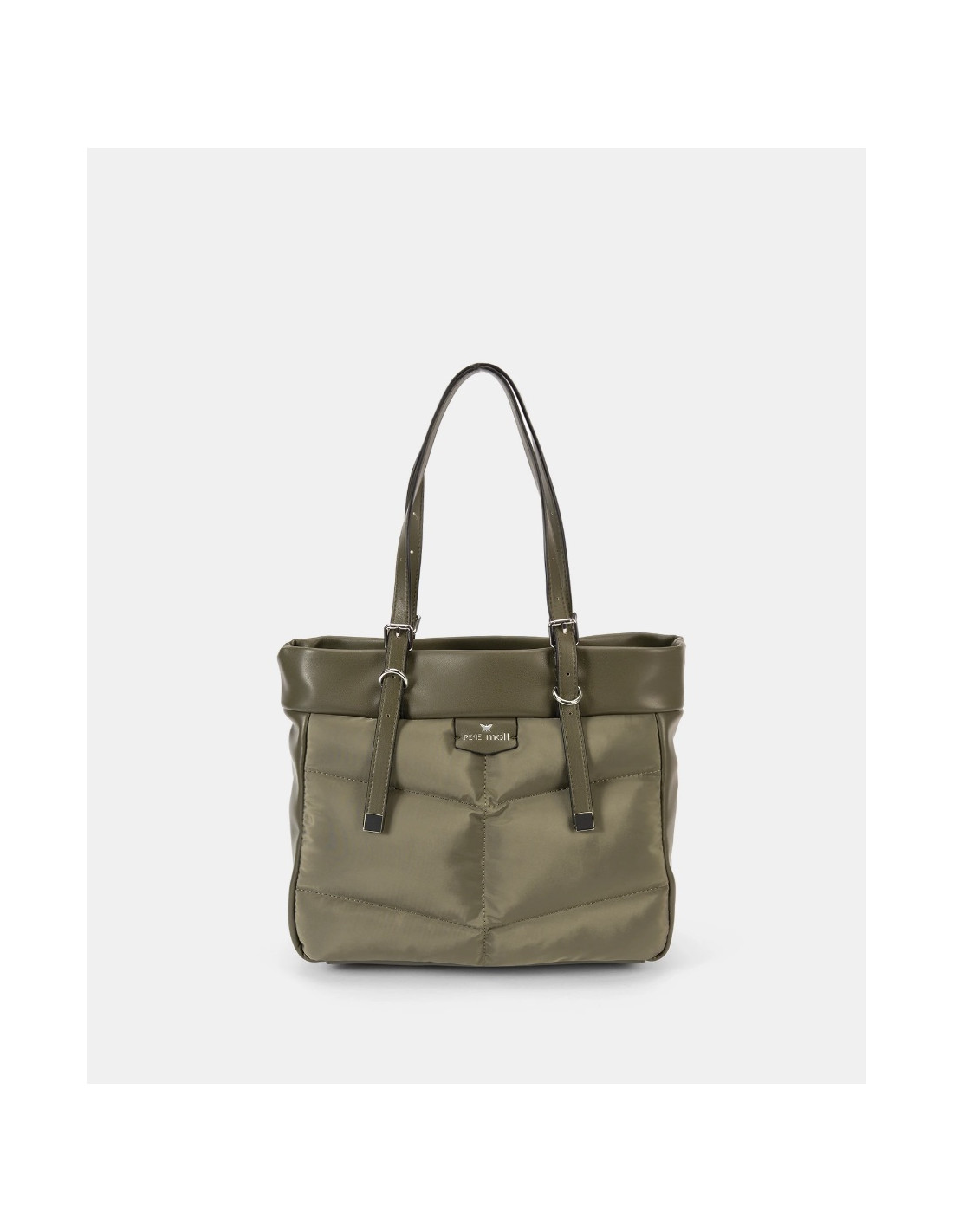 Bolso de hombro para mujer de la marca Pepe Moll en color verde kakhi y negro.