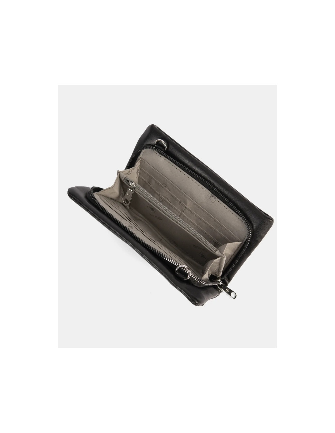 Interior forrado espacioso con tarjetero, bolsillo con cremallera y divisor central. Perfecto para planes de día o noche, con un toque sofisticado.