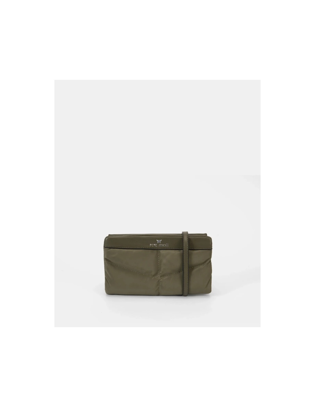Bolso pequeño estilo bandolera, pequeño por fuera pero sorprendente por dentro, para mujer de la marca Pepe Moll en color verde kakhi y negro.