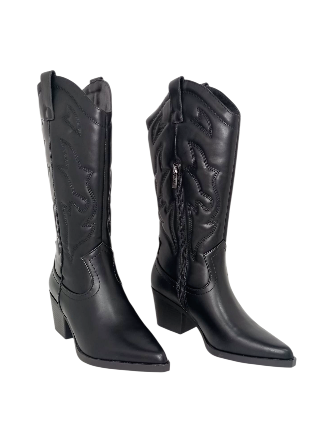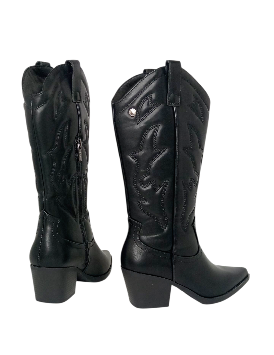 Fabricada en material que imita la piel. Esta bota de estilo cowboy destaca por su estilo western, actual y moderno. Ideal para darle un toque único a cualquier look bien sea llamativo ó sofisticado.
