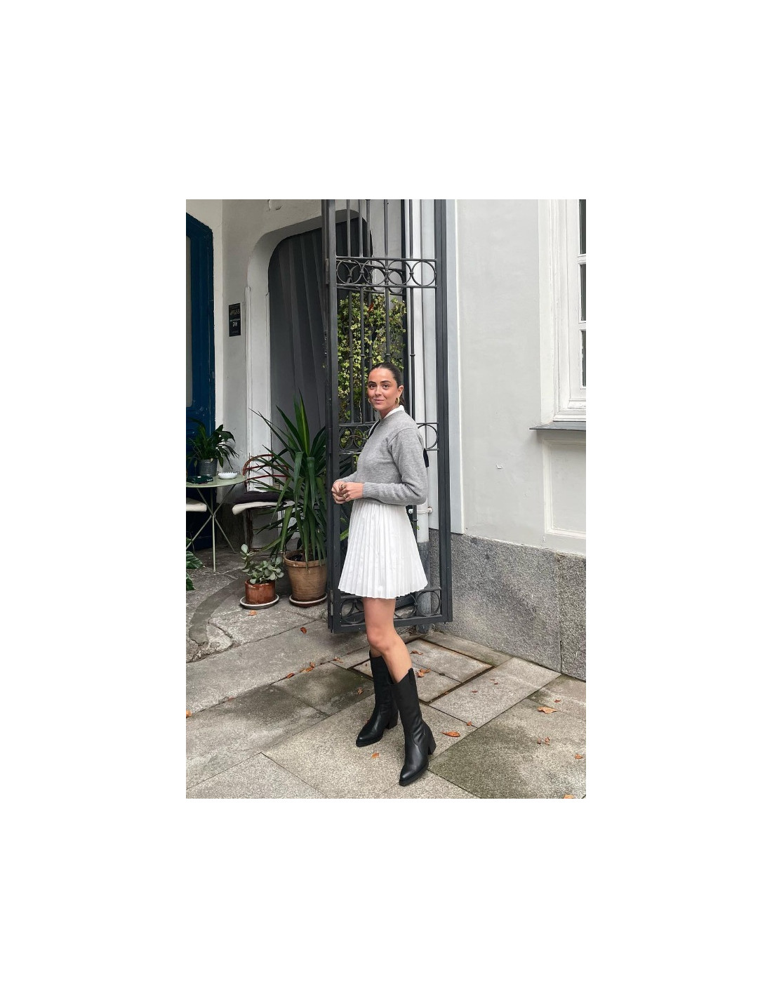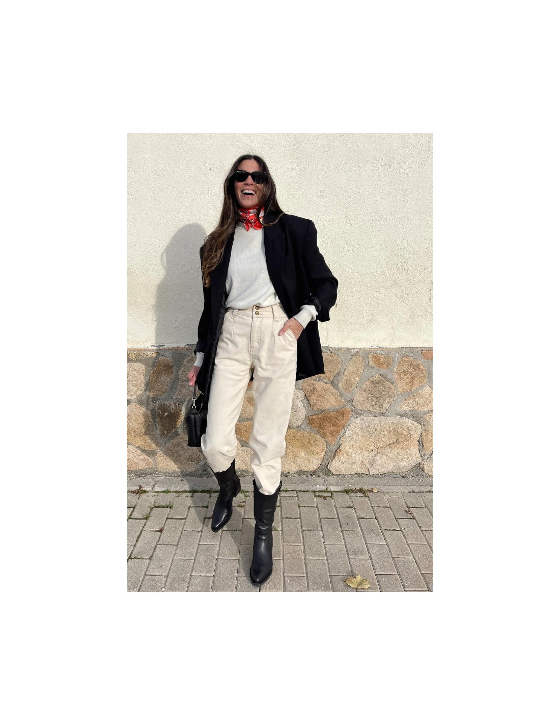 Bota tipo campera fabricada en piel de color negro, con cierre de cremallera en la cara interna y tiradores en los laterales para facilitar el calce.