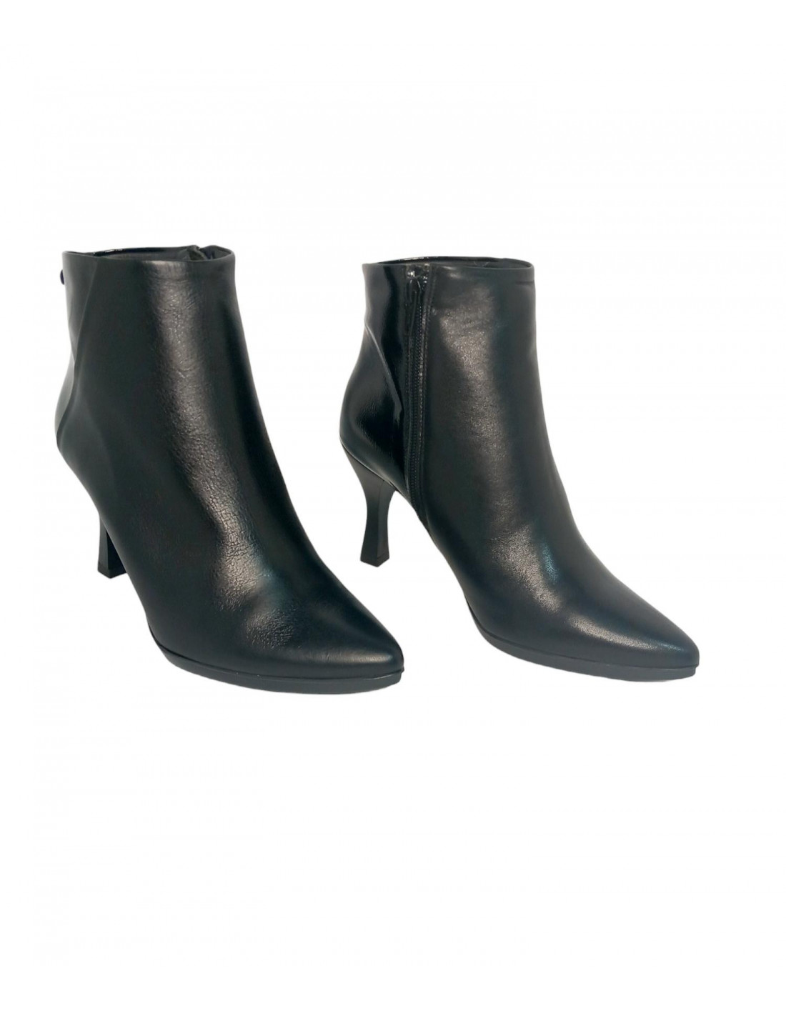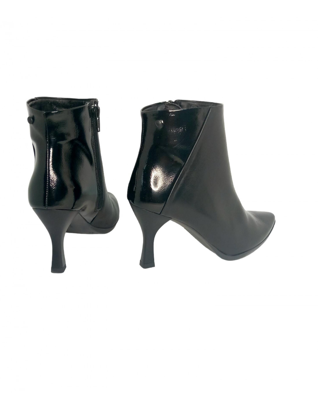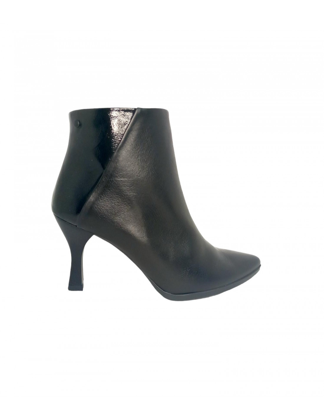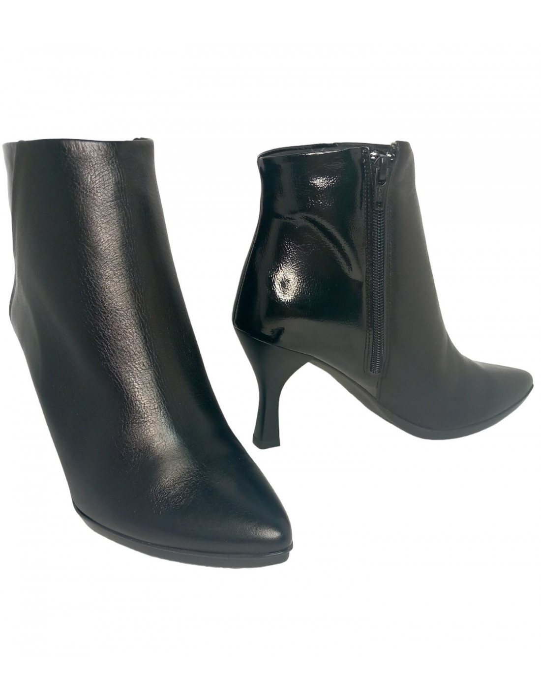 Botín fabricado en piel natural de primera calidad color negro, parte de la talonera con brillo. Cierre mediante cremallera en la parte interior del botín. Forro interior en textil y piel Dry Adsorber y plantilla acolchada Original Desiree Zona Descanso Metatarso efecto huella. Un diseño transpirable, ergonómicos y flexible