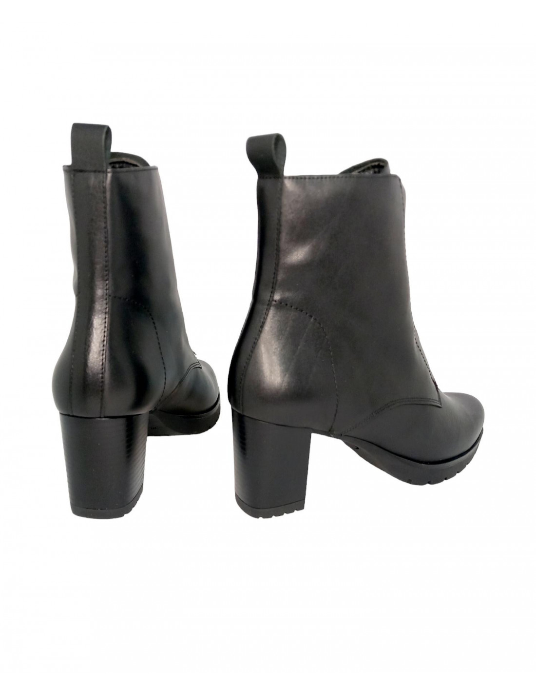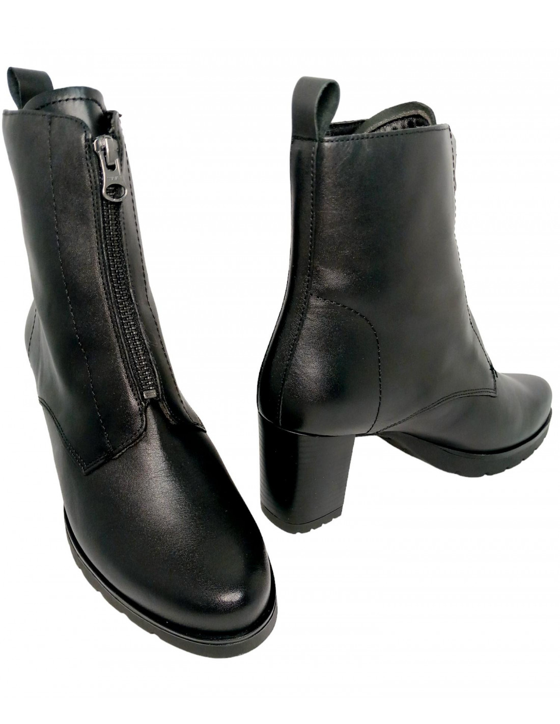 Botín fabricado en piel natural de primera calidad color negro. Cierre mediante cremallera delantera. Forro interior en textil y piel Dry Adsorber y plantilla acolchada Original Desiree Zona Descanso Metatarso efecto huella. Un diseño transpirable, ergonómicos y flexible