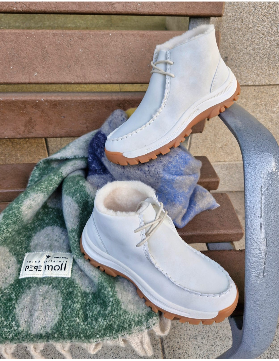 Dispone de forro de pelo sintético, para mantener los pies calientes en los días más fríos del invierno y suela track de goma para mayor comodidad.