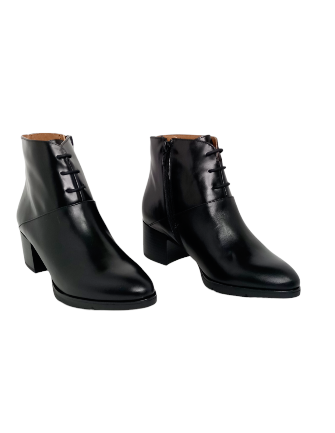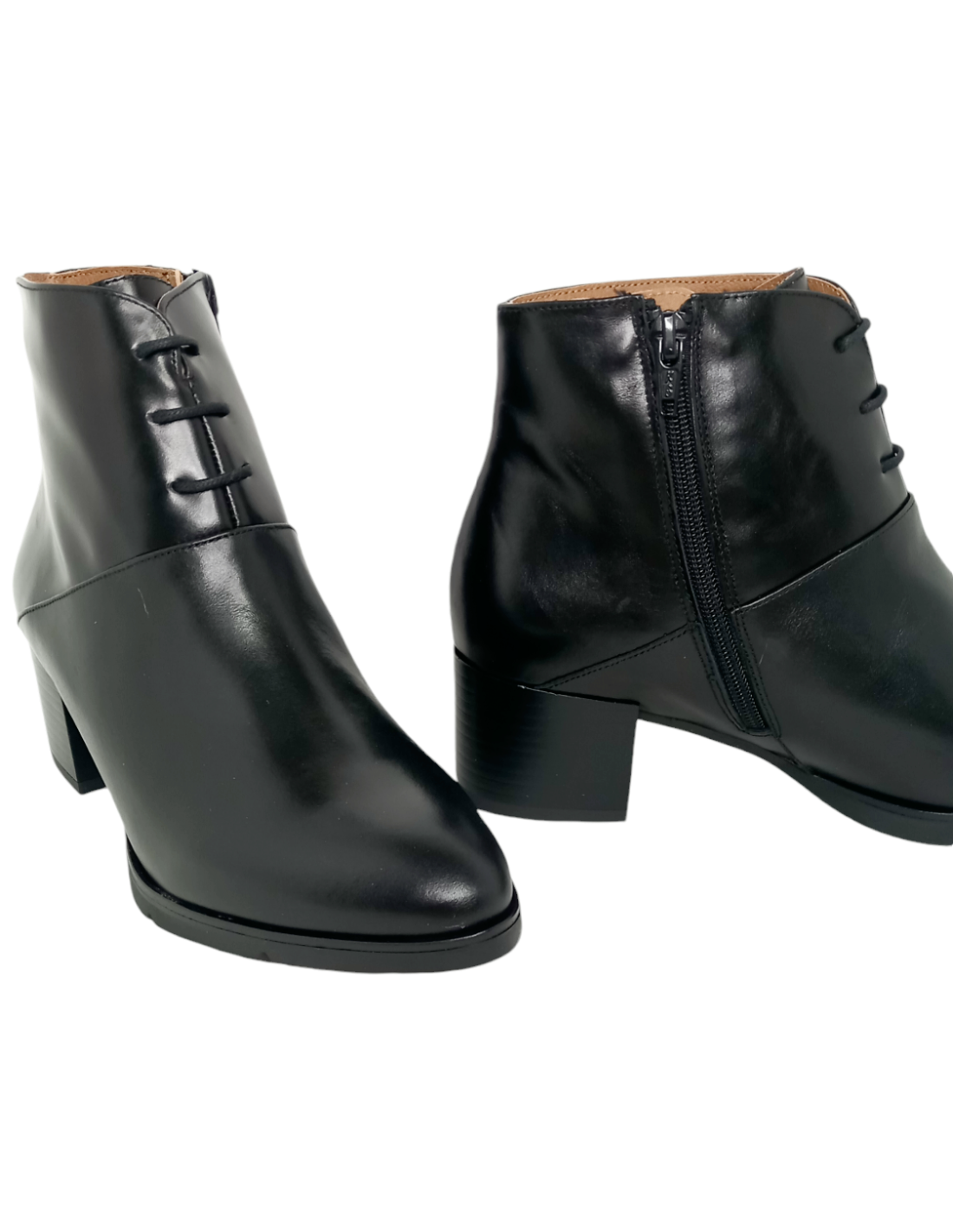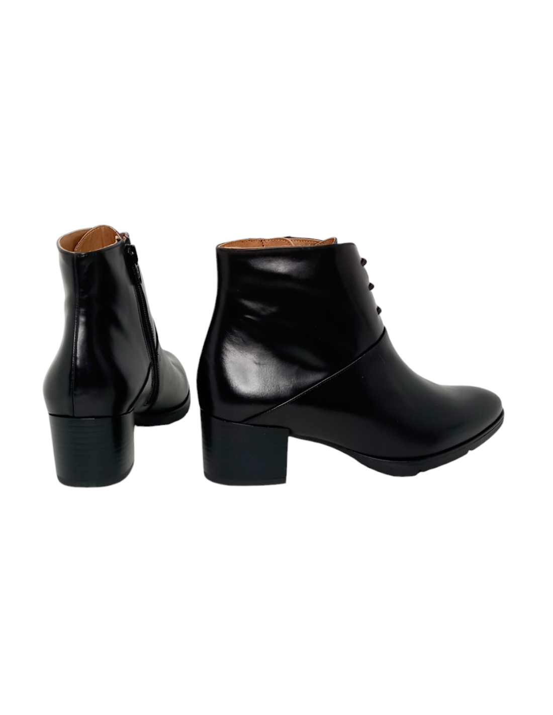 Es de caña baja, cuenta con cierre de cordones y cremallera para facilitar el calce, proporcionar un perfecto ajuste al pie sin necesidad de tener que atar y desatar en cada puesta.