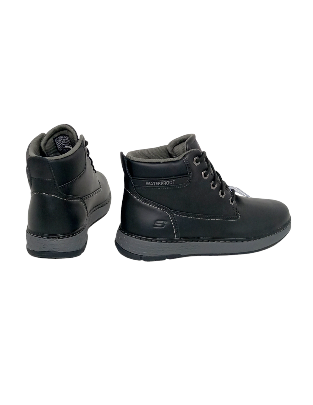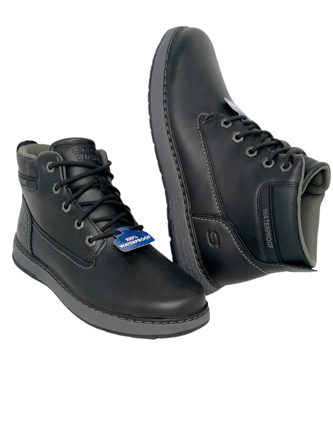 Cuenta con cierre de cordones para un perfecto ajuste al pie, plantilla con amortiguación Skechers Air-Cooled Memory Foam®, que además lleva infusión de carbón vegetal para neutralizar el mal olor. Está forrado con membrana impermeable, lo que lo hace 100% waterproof.