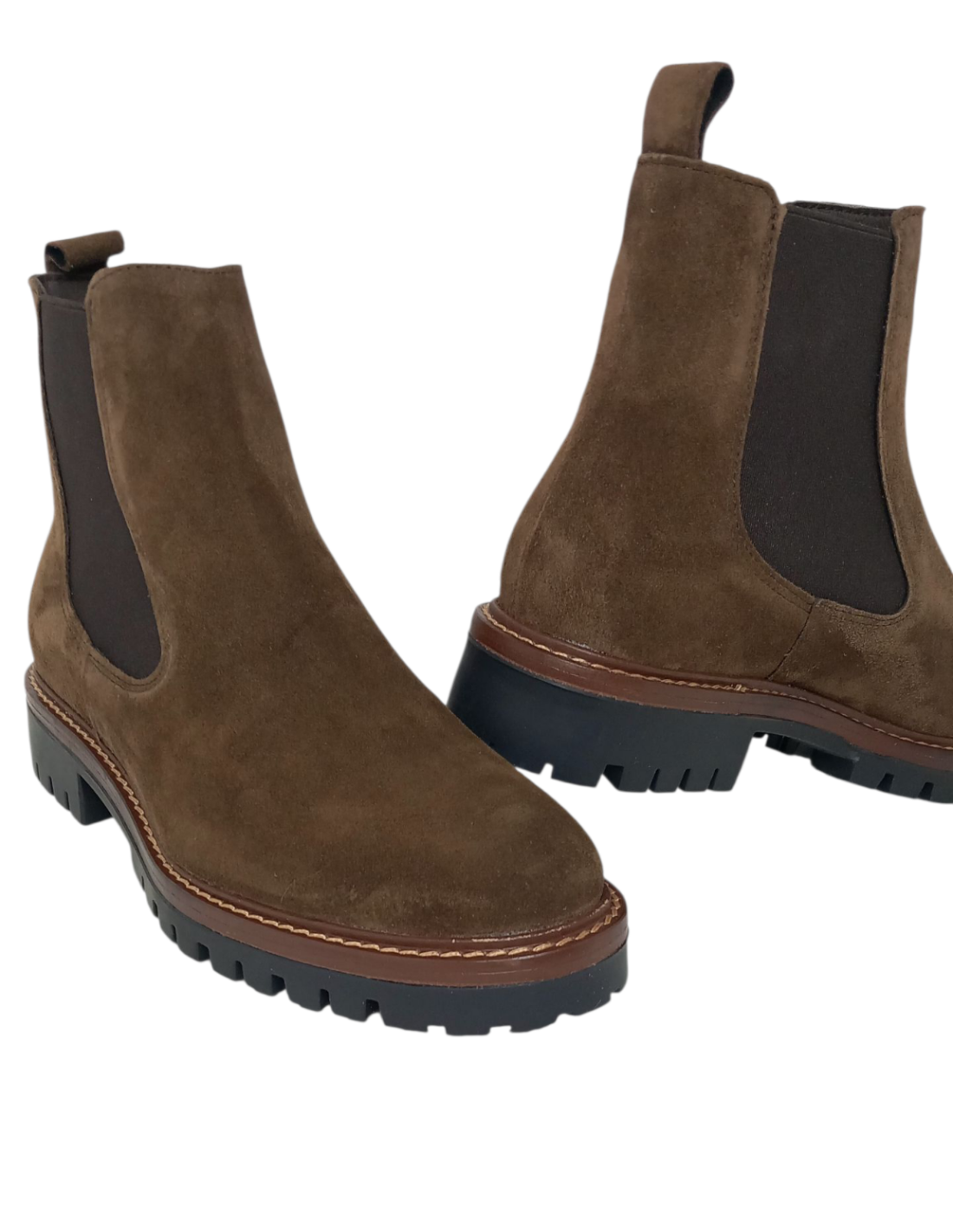 Botín tipo chealsea fabricado en piel serraje (baby silk) de primera calidad en color moka.