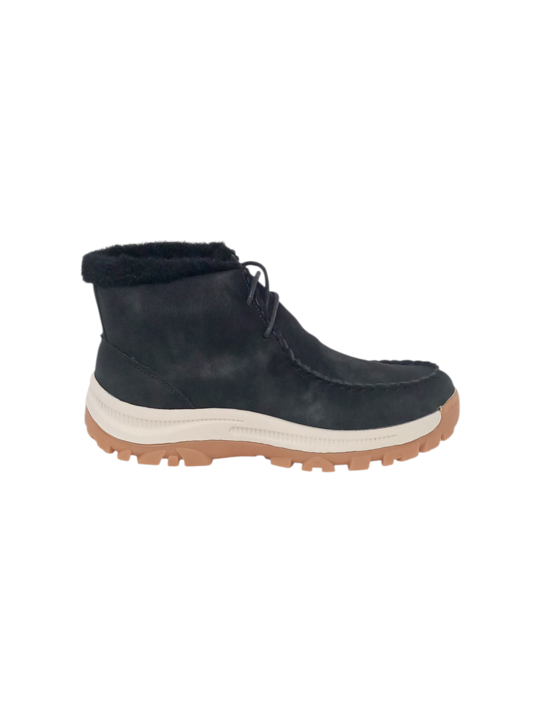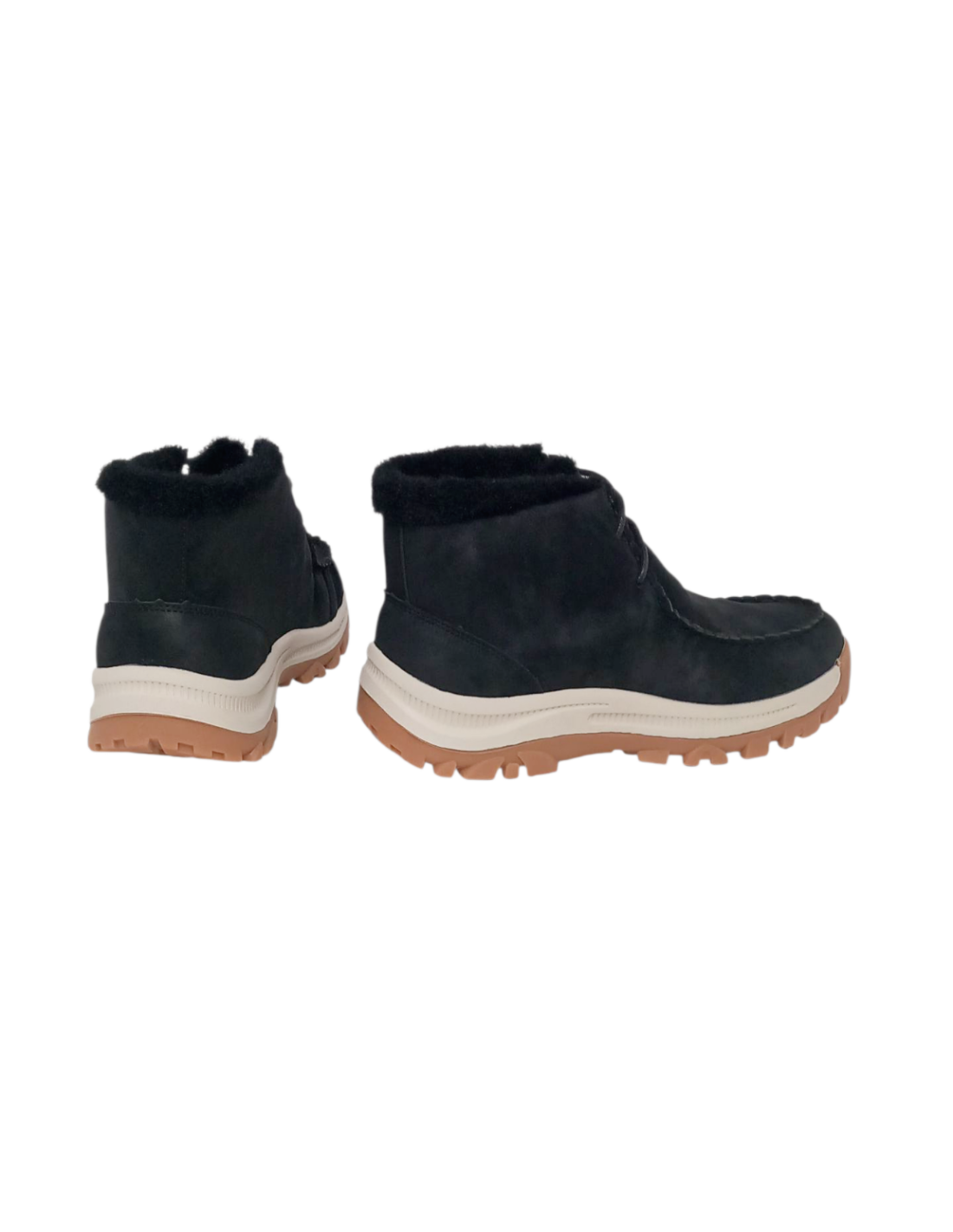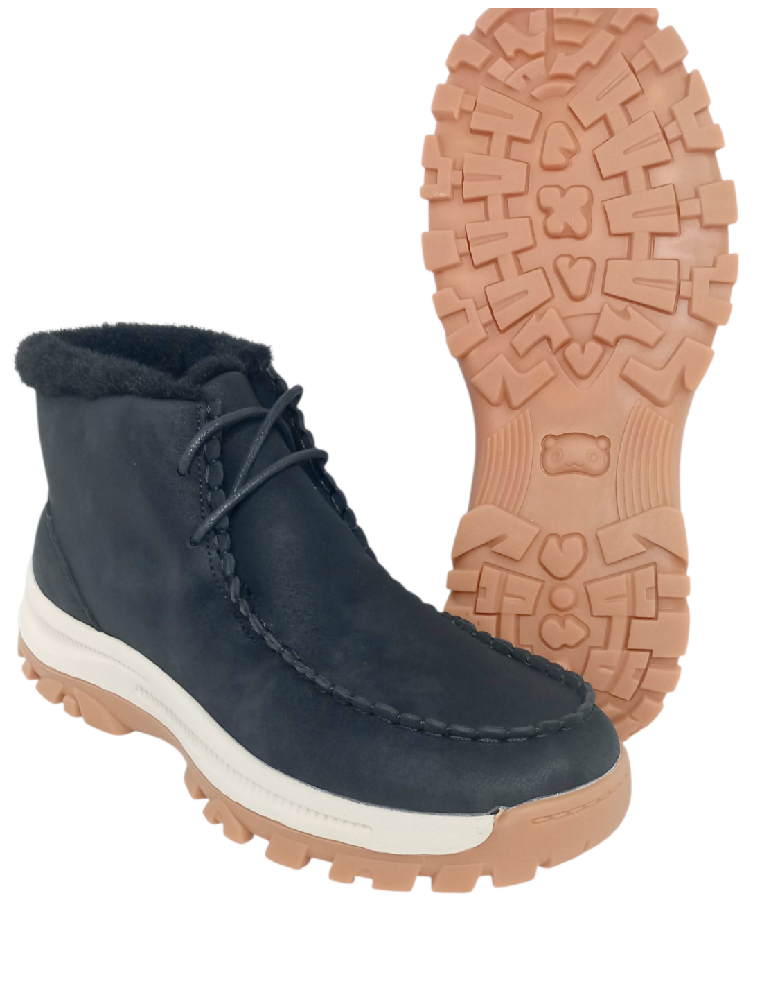 Dispone de forro de pelo sintético, para mantener los pies calientes en los días más fríos del invierno y suela track de goma para mayor comodidad.
