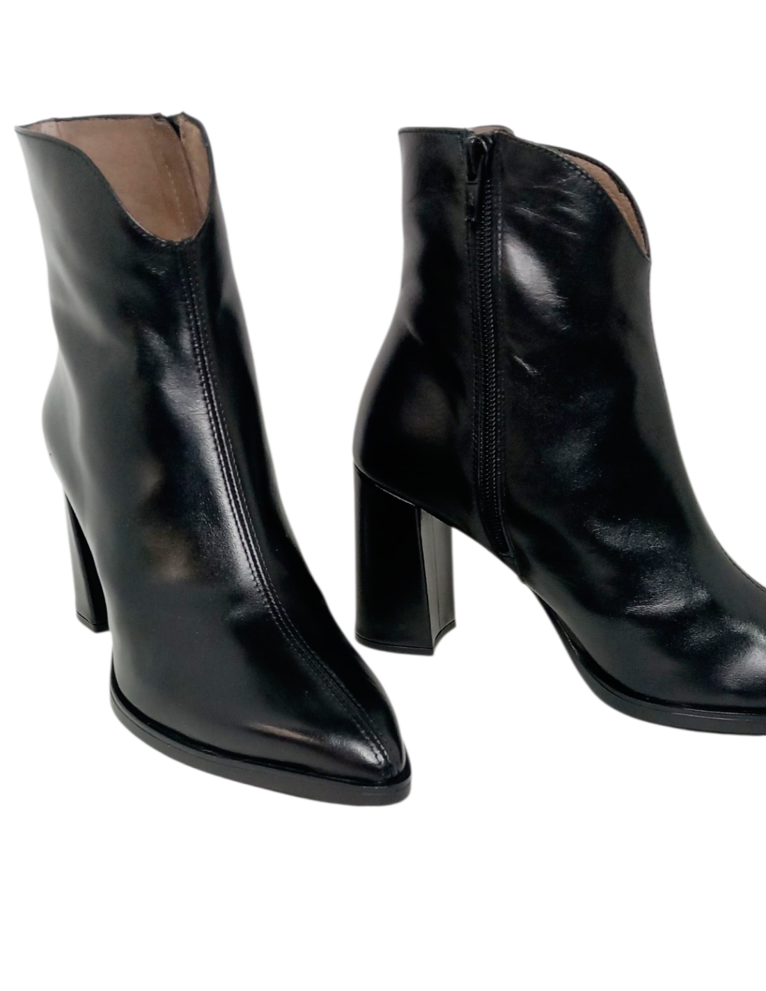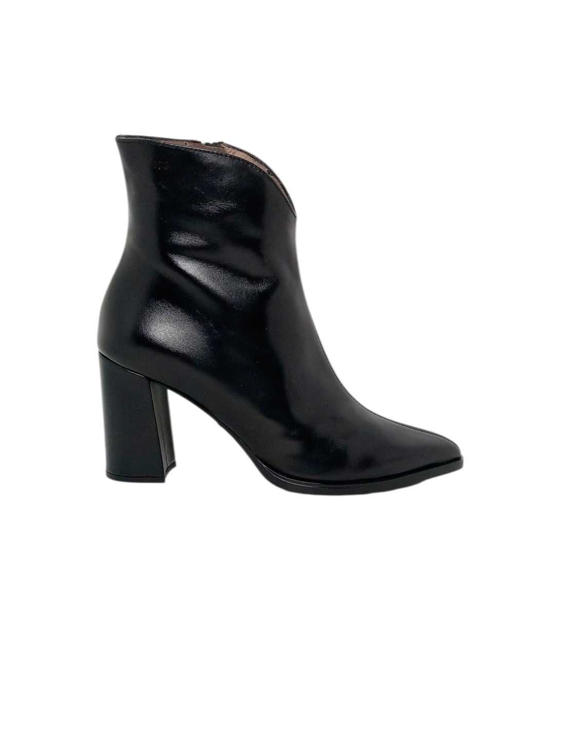 Botín para mujer de la marca Wonders fabricados en piel negra lisa.