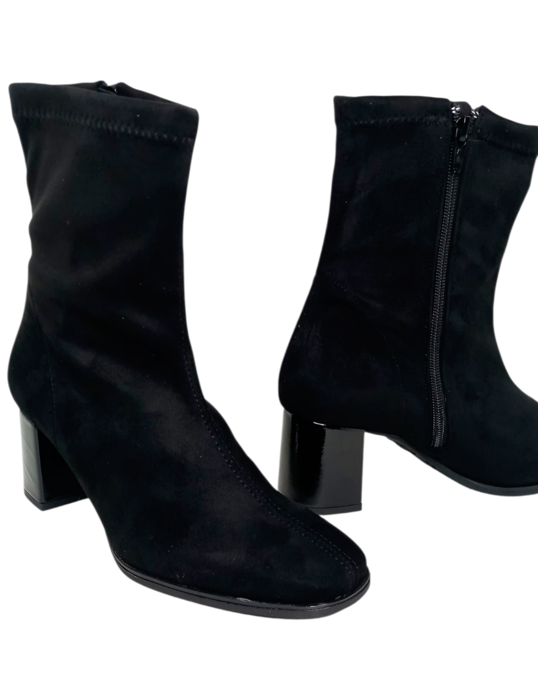 Cuenta con plantilla de piel acolchada, punta ligeramente cuadrada y tacón ancho de 6 cm aprox.