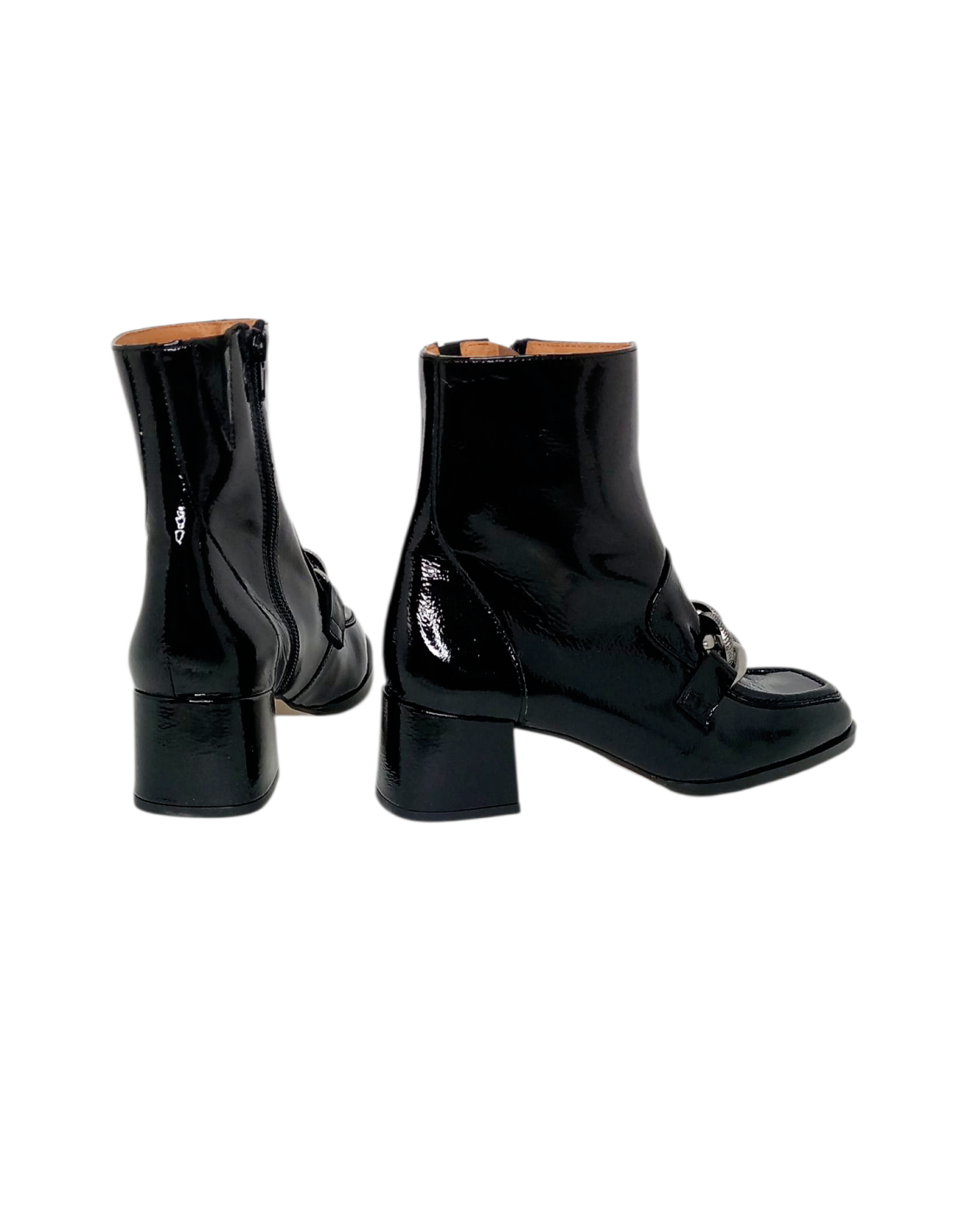 Cuenta con cierre de cremallera y adorno de hebilla metálica en la zona del empeine.