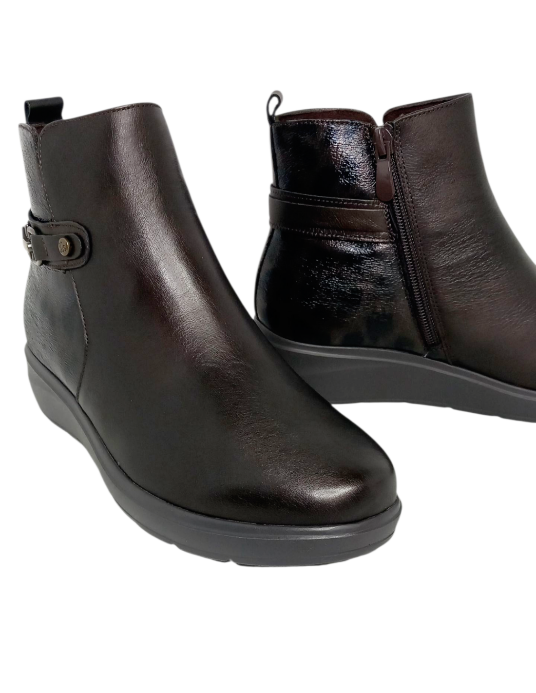 Cuenta con horma ancha, cierre de cremallera, forro textil y plantilla de piel extraíble de un máximo confort.