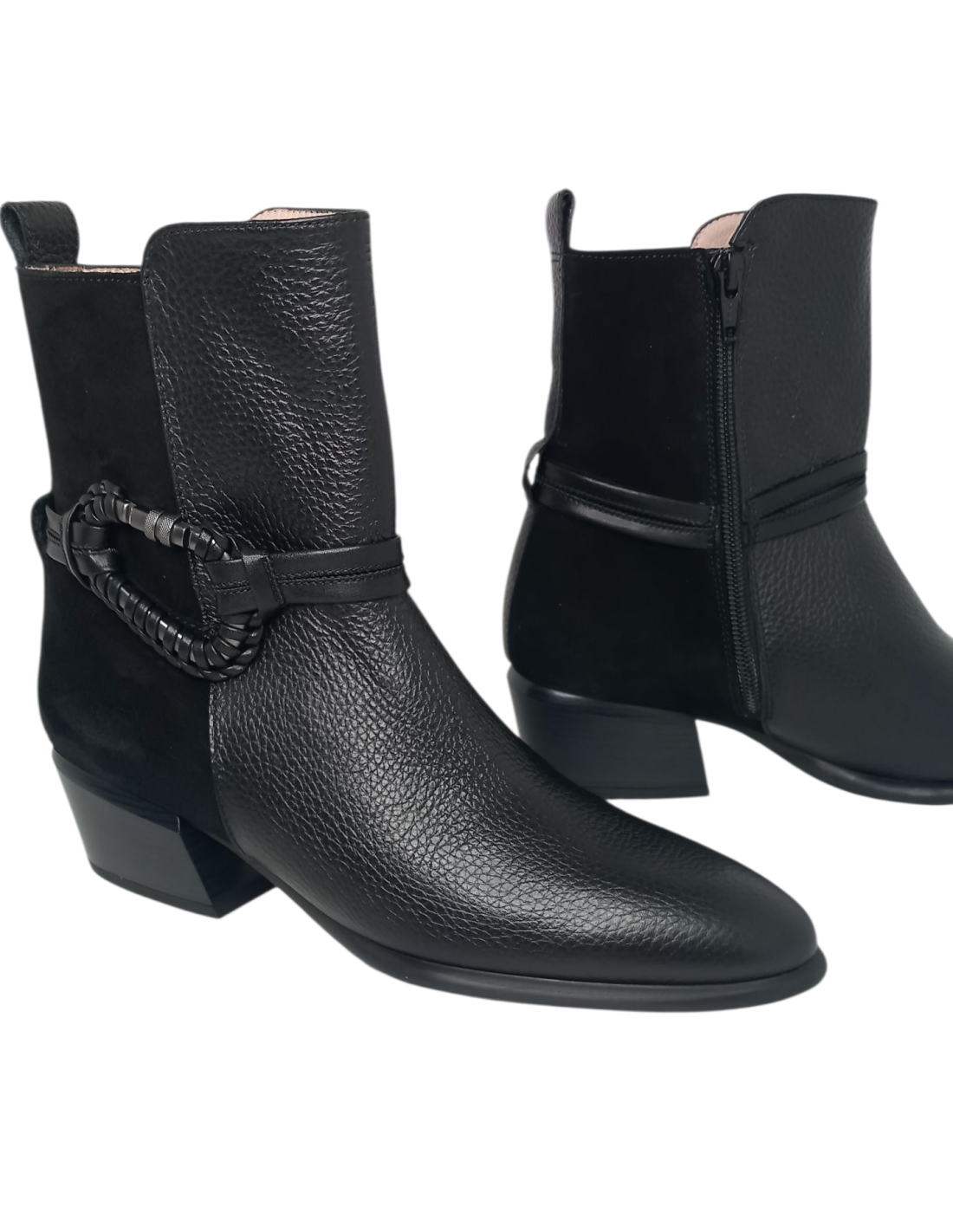 Elaborado en piel efecto grabado. Forro interior termorregulador y transpirable elaborado en piel. Plantilla de microfibra.