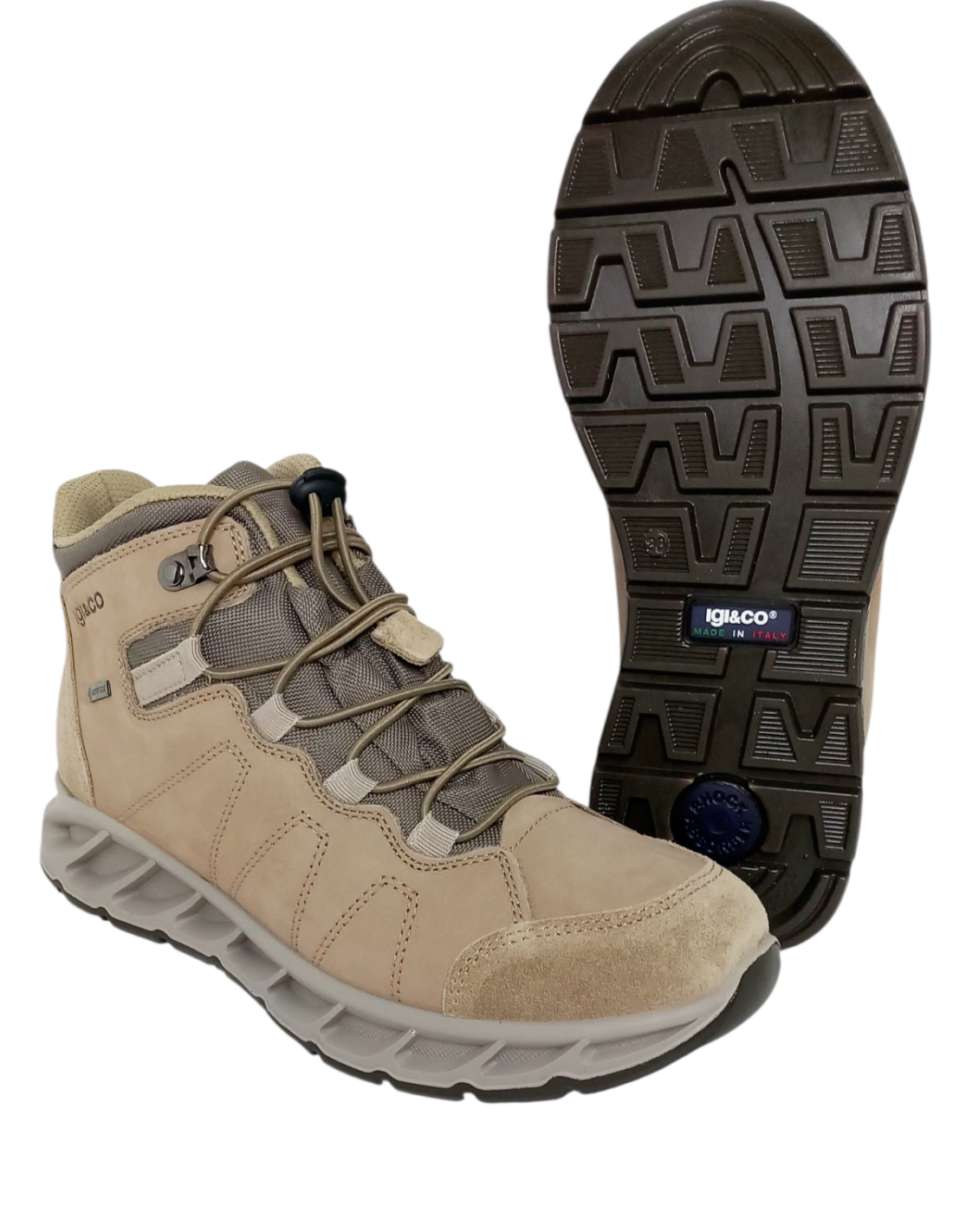 Botín casual fabricado en piel nobuk de primera calidad en color taupe.