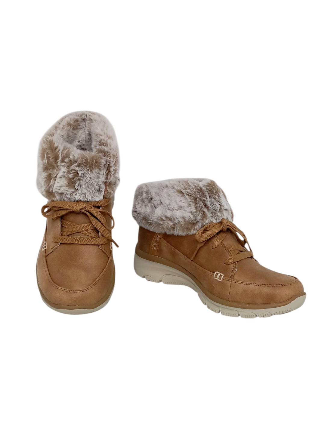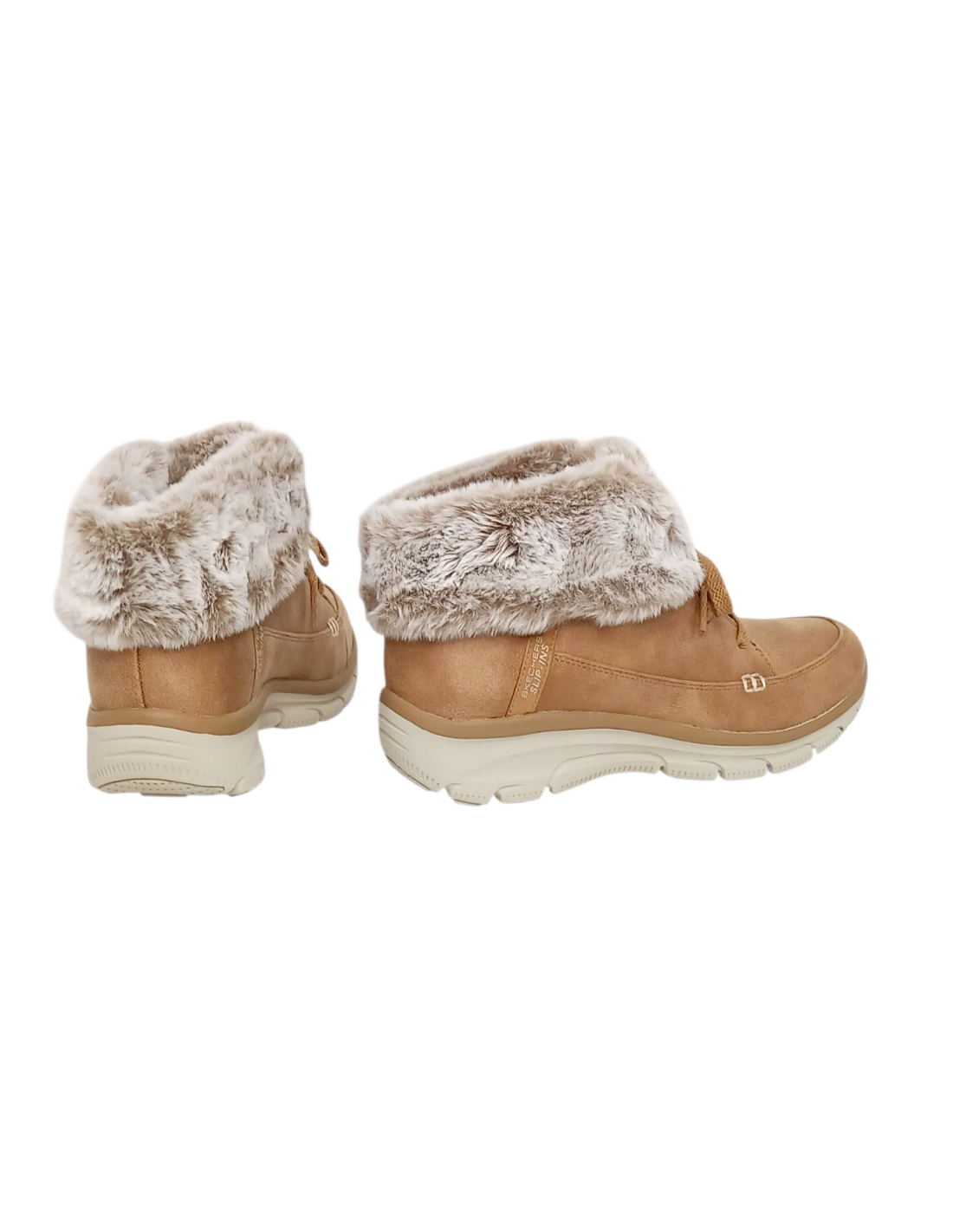 Estas botas preparadas para climas fríos cuentan con una parte superior de ante con cordones, cuello y forro de pelo sintético, y una plantilla con amortiguación Skechers Air-Cooled Memory Foam®.