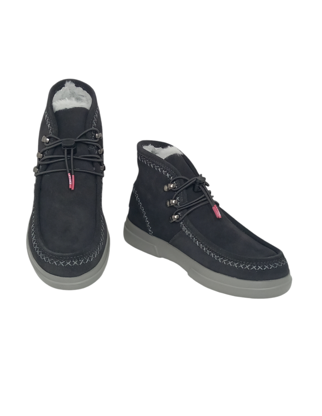 Cuenta con forro de pelo sintético ultra-suave y abrigado, cierre mediante cordones elásticos ajustables en color burdeos, haciendo un bonito contraste, y plantilla extraíble de EVA Pitas Confort con planta de piel.