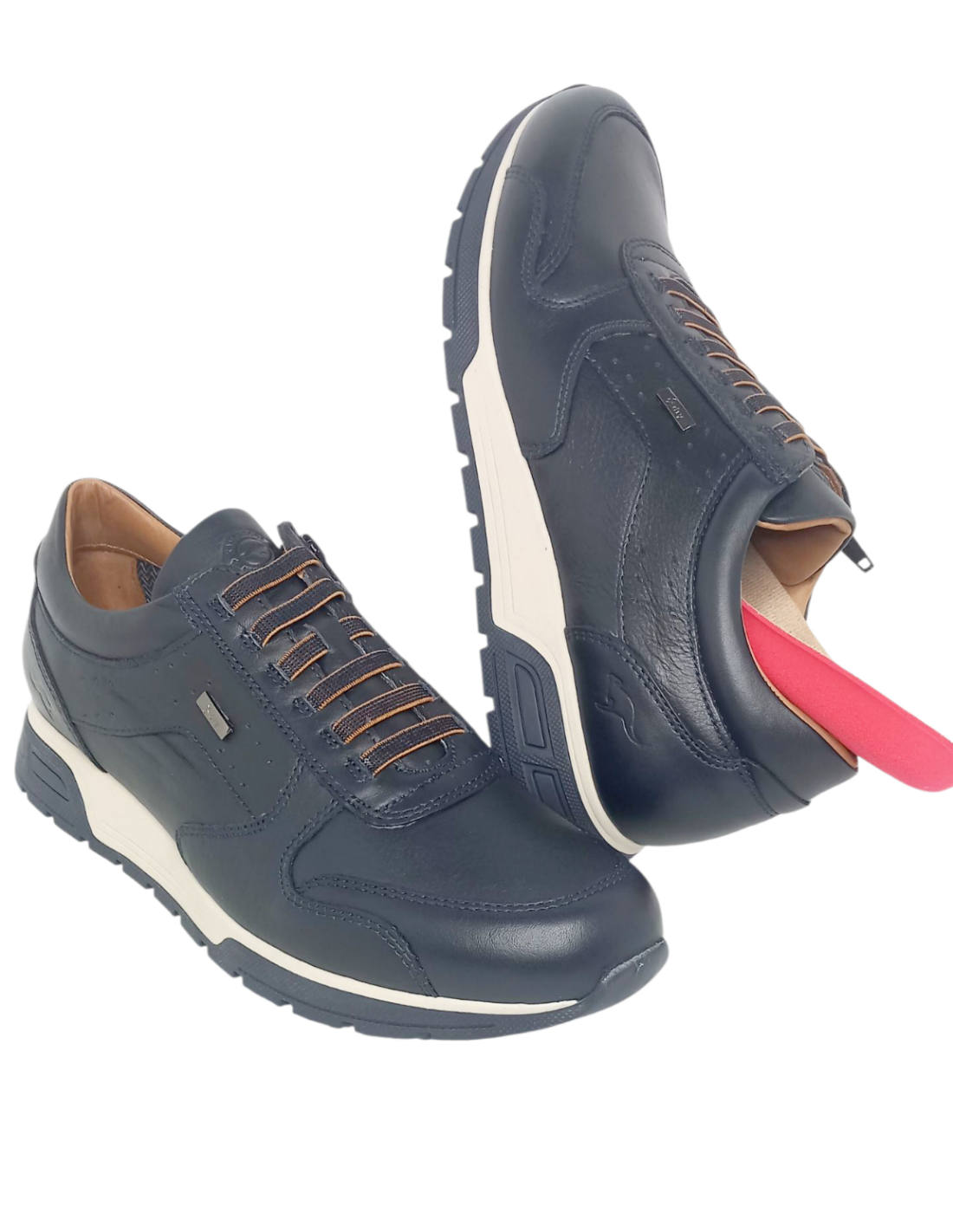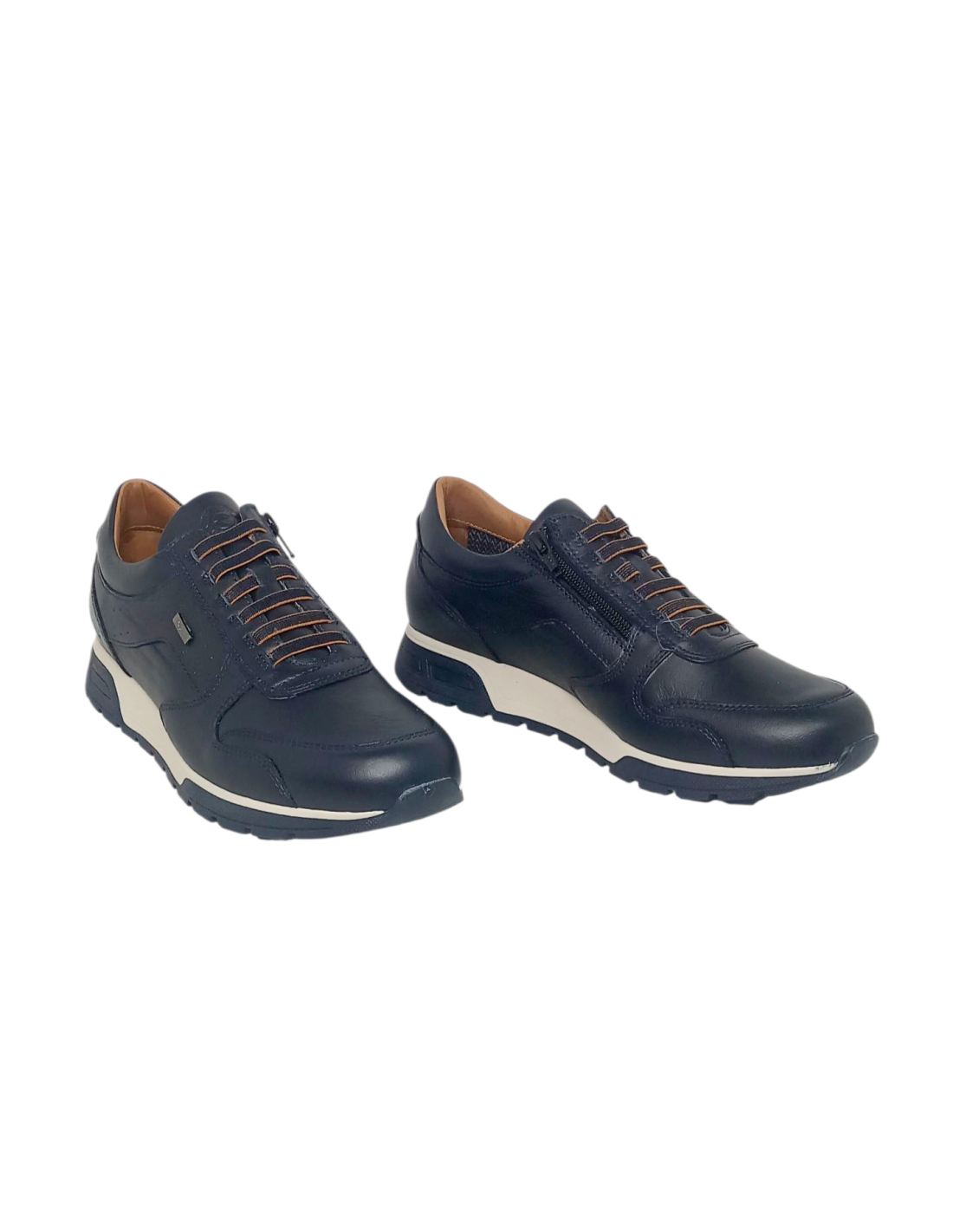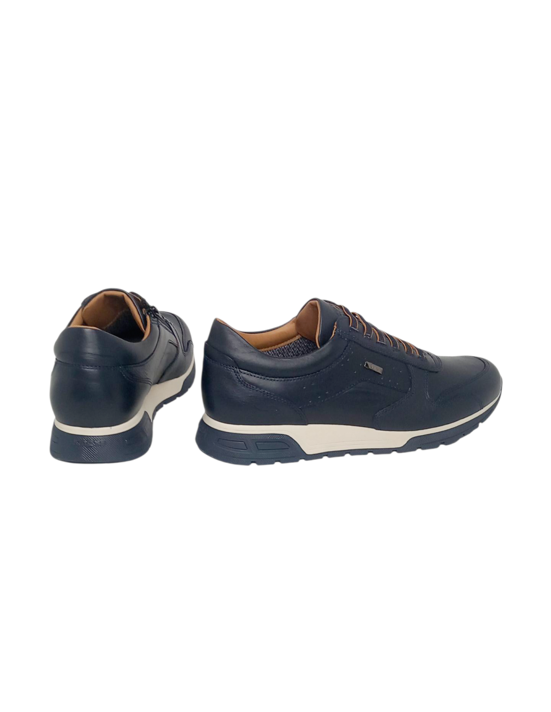 Zapato estilo deportivo confeccionado en piel vacuno de primera calidad, en color azul marino.