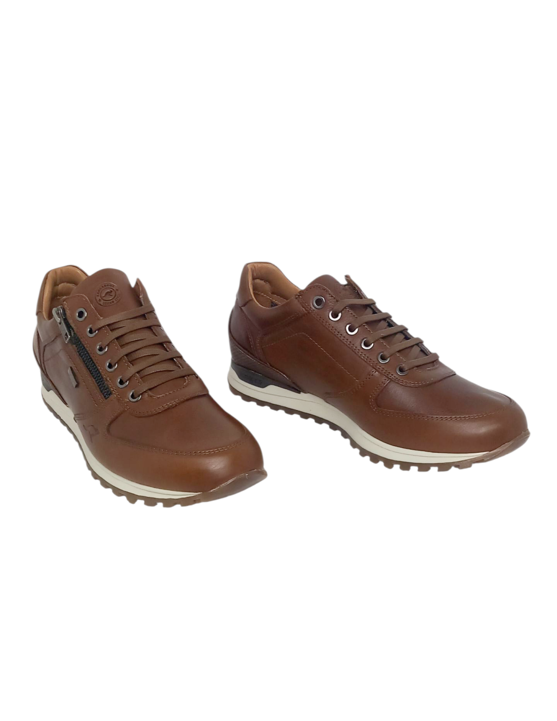 Zapato estilo deportivo confeccionado en piel vacuno de primera calidad, en color cuero.