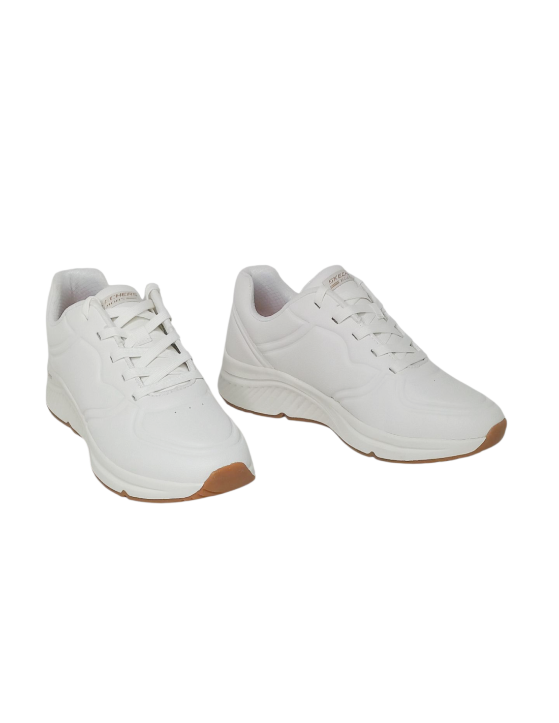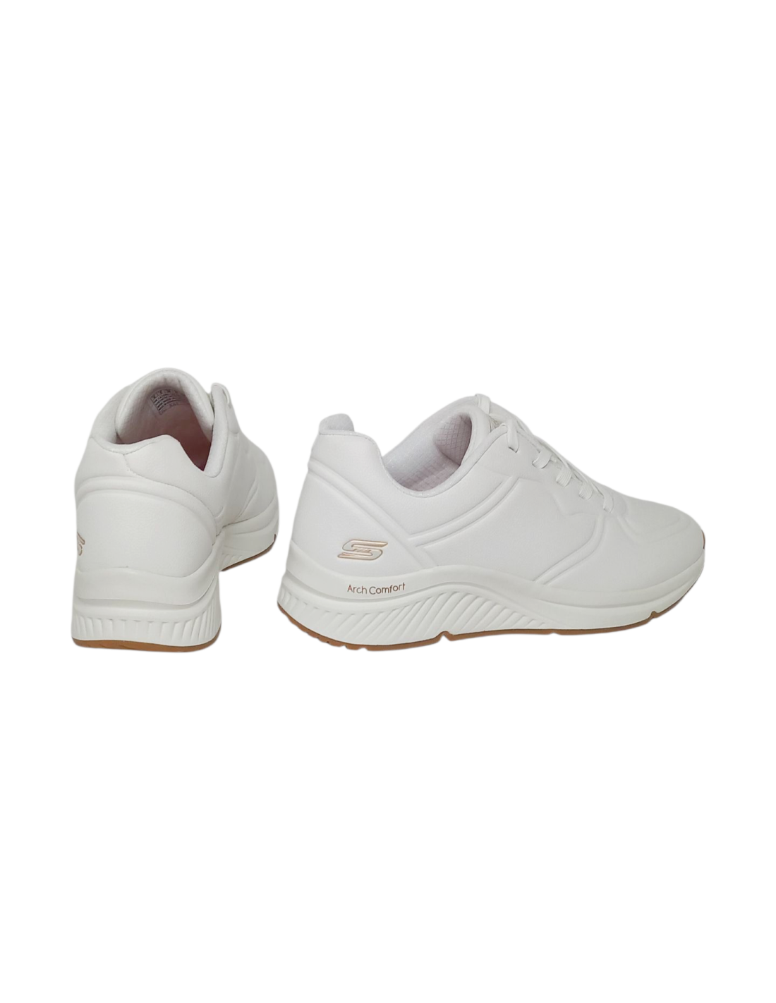 Zapatilla deportiva Skechers Arch Comfort B Sweet. Este modelo está fabricado en piel sintética de color blanco.