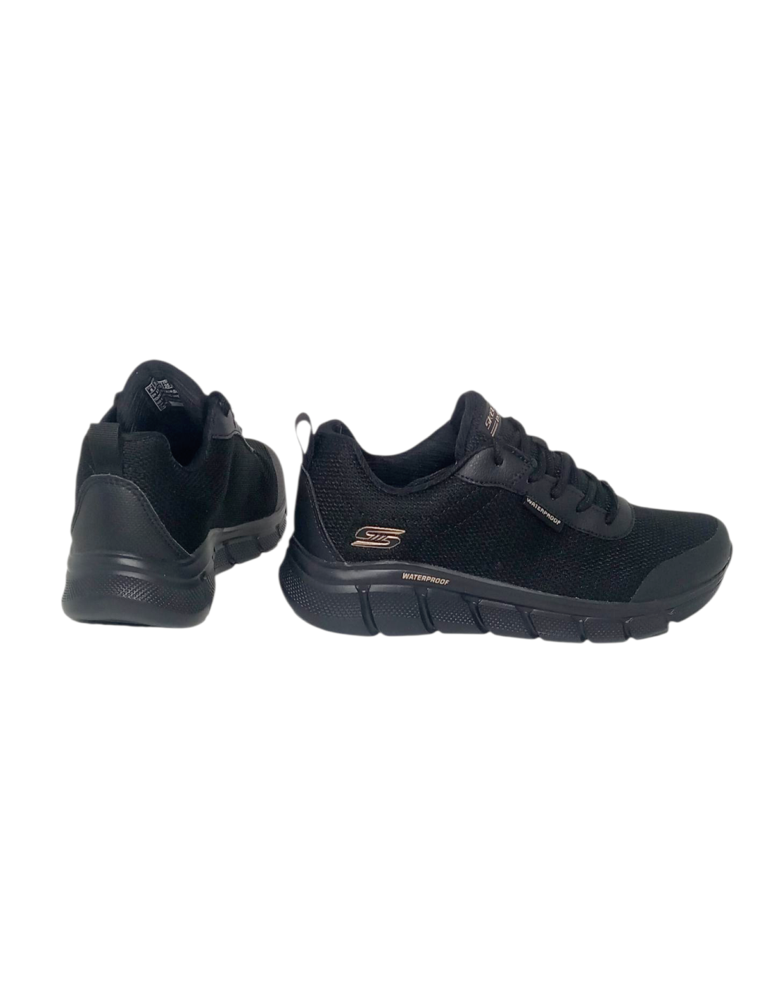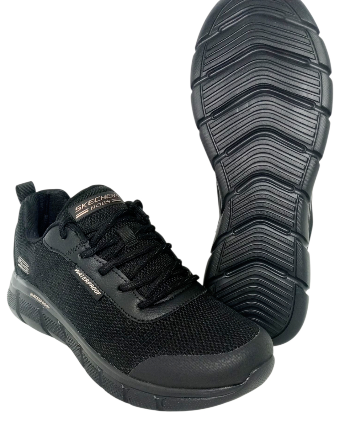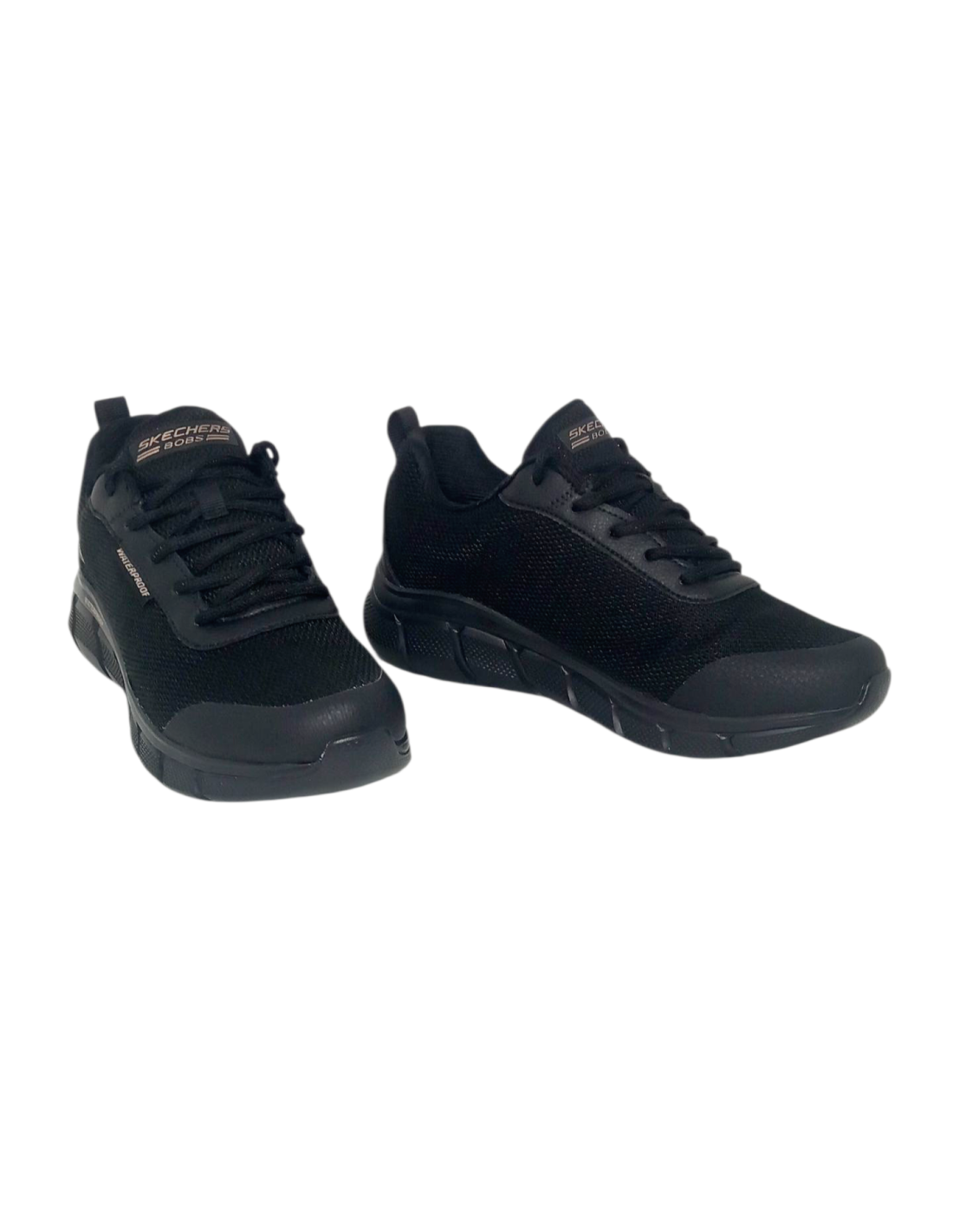 Deportivo Skechers BOBS Sport™ B Flex con sistema WATERPROOF en color negro, fabricado con materiales 100% veganos, conla parte superior de malla impermeable y costuras selladas.