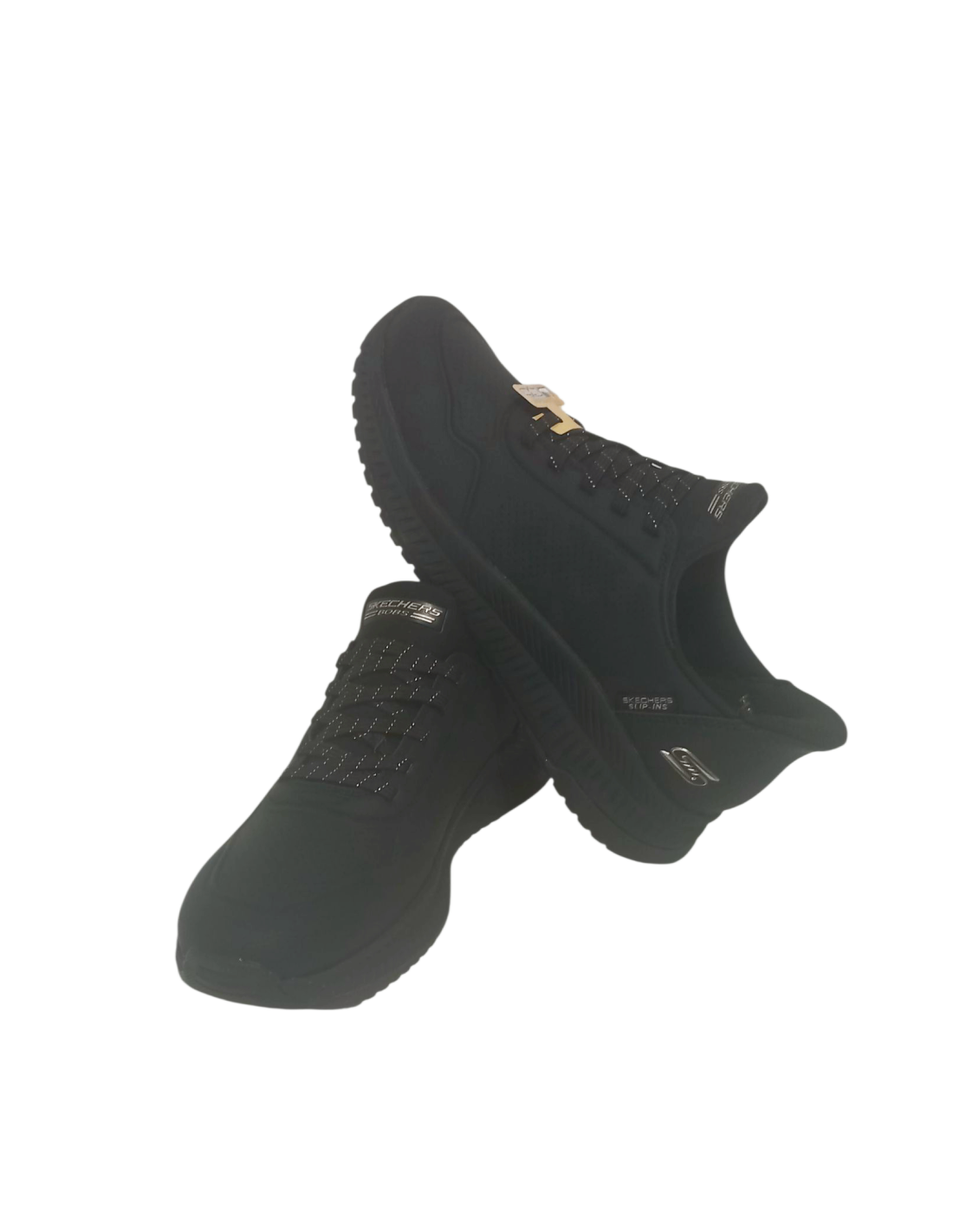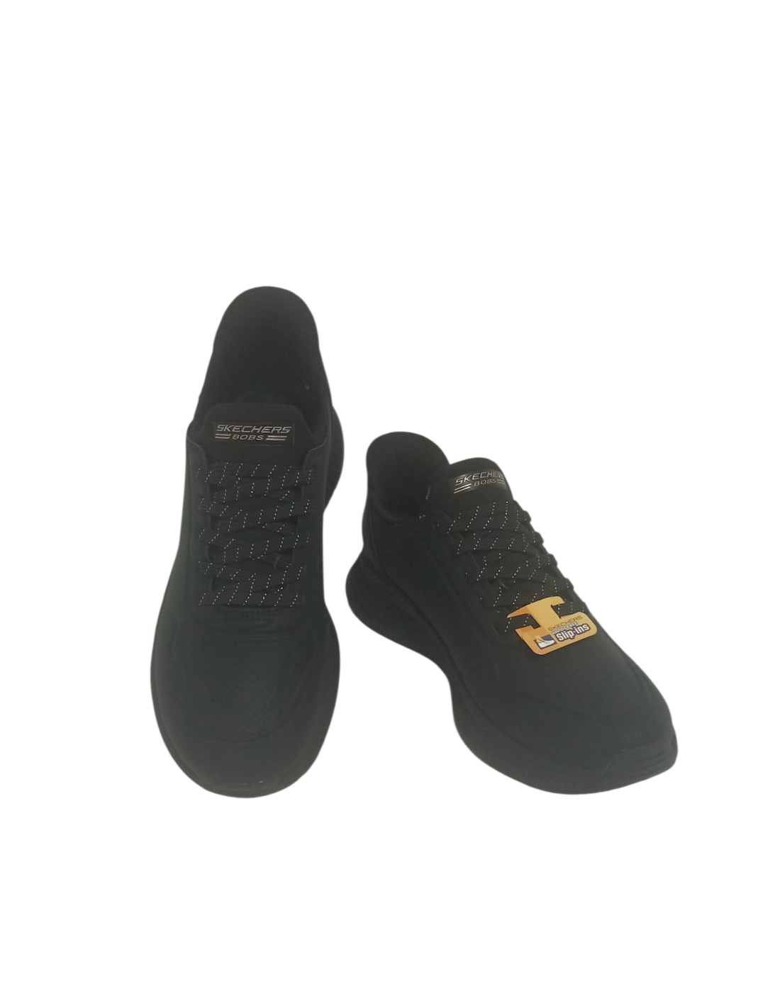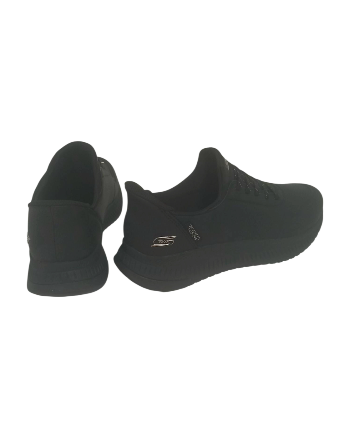 Zapatilla deportiva de la línea SLIP-INS de Skechers de color negro con parte superior fabricada en símil piel resistente.