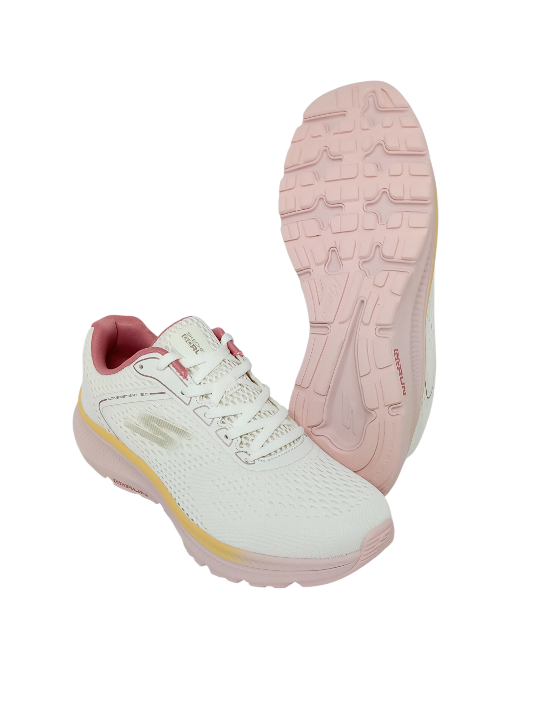 Deportivo para mujer de la marca Skechers GO RUN Consistent 2.0 - Miley Marker en color natural con suela en color rosa. Su diseño te permitirá realizar caminatas y entrenamientos diarios priorizando la comodidad y su diseño versátil.