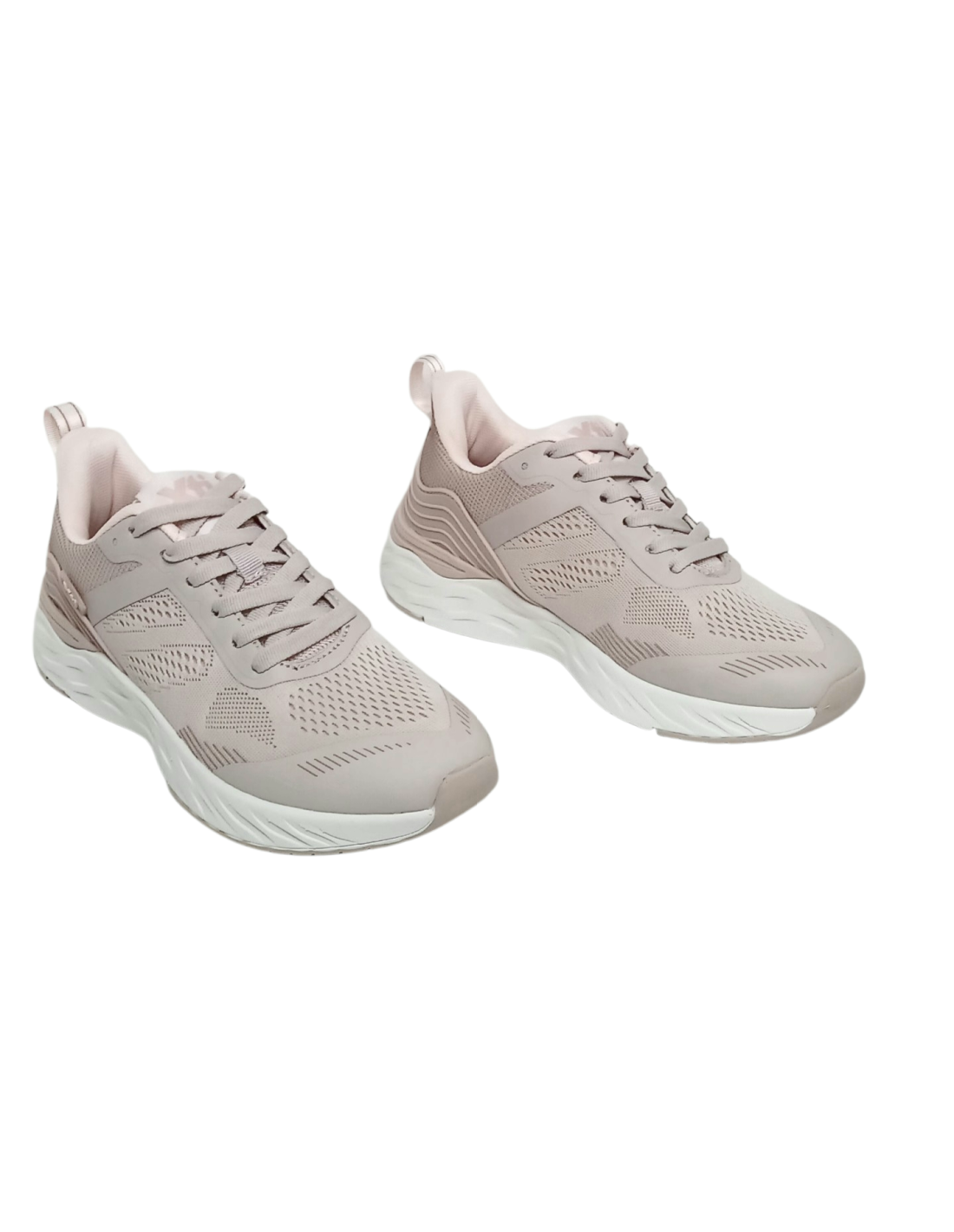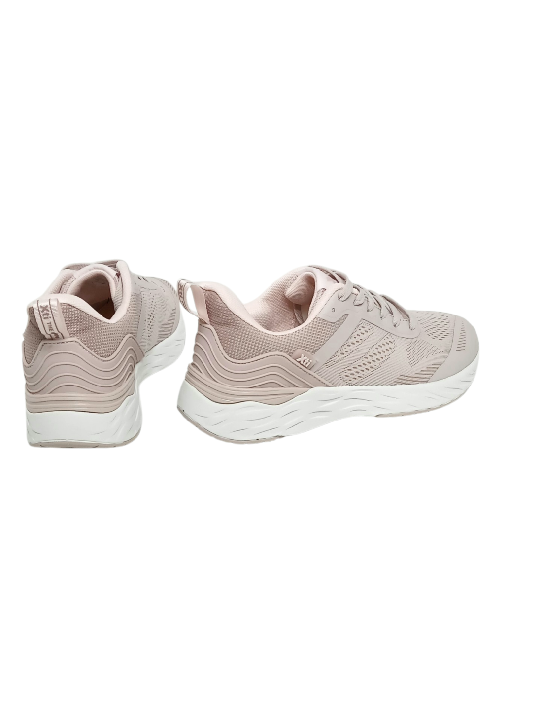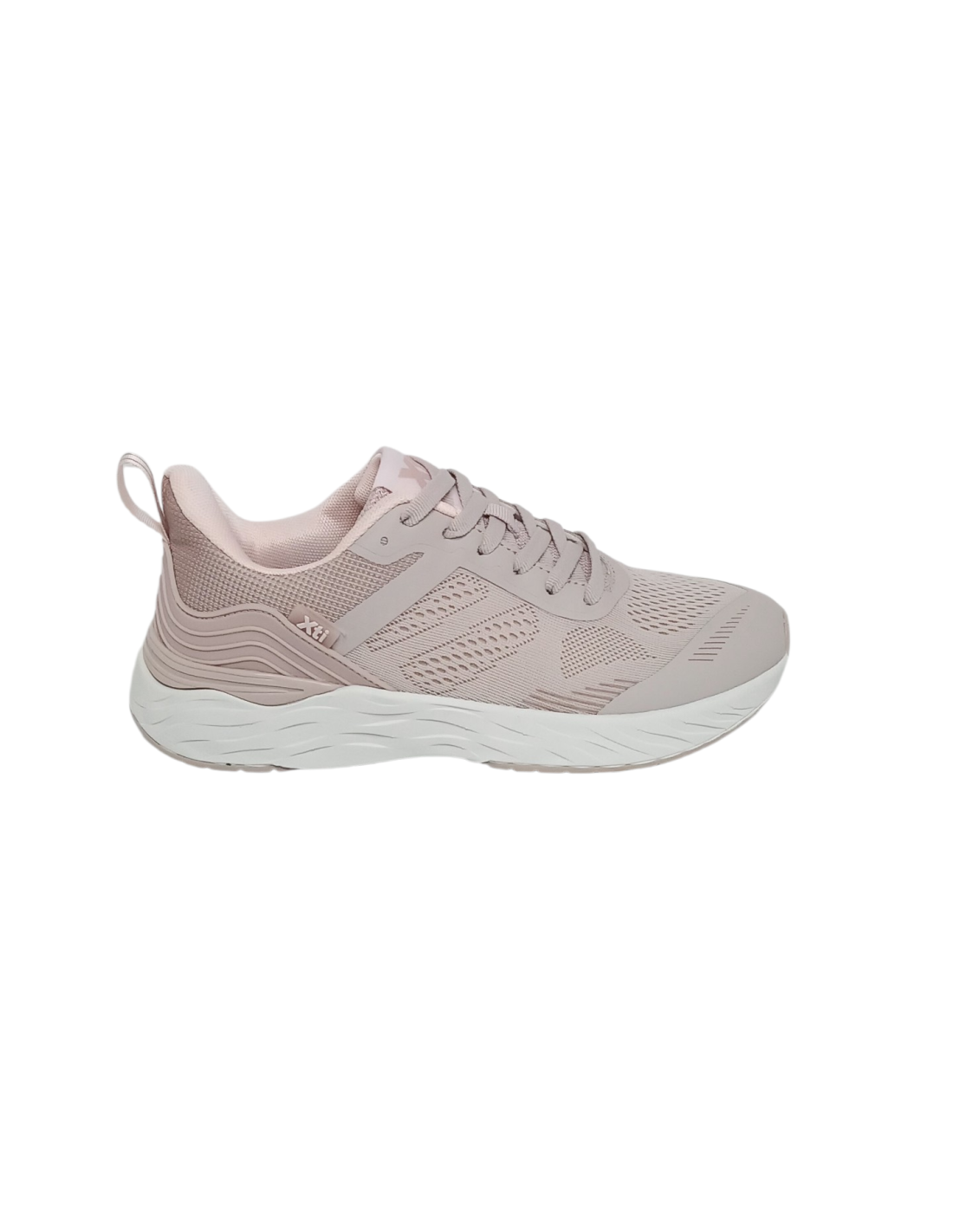 Zapatilla deportiva fabricada en material textil transpirable en colores rosa nude y negro.