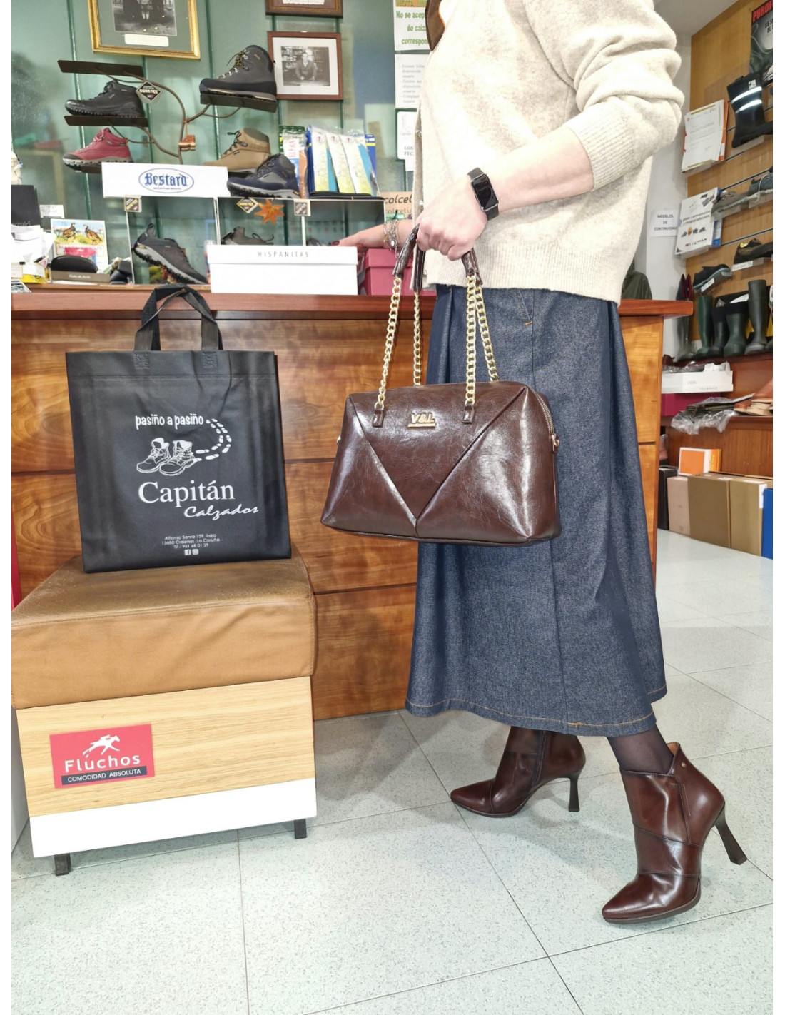 Botín de vestir fabricado en piel natural de primera calidad color marrón, con diseño de caña corta y escote en pico en el lateral exterior, que alarga la pierna visualmente y favorece mucho tanto con vestidos y faldas como con todo tipo de pantalones.