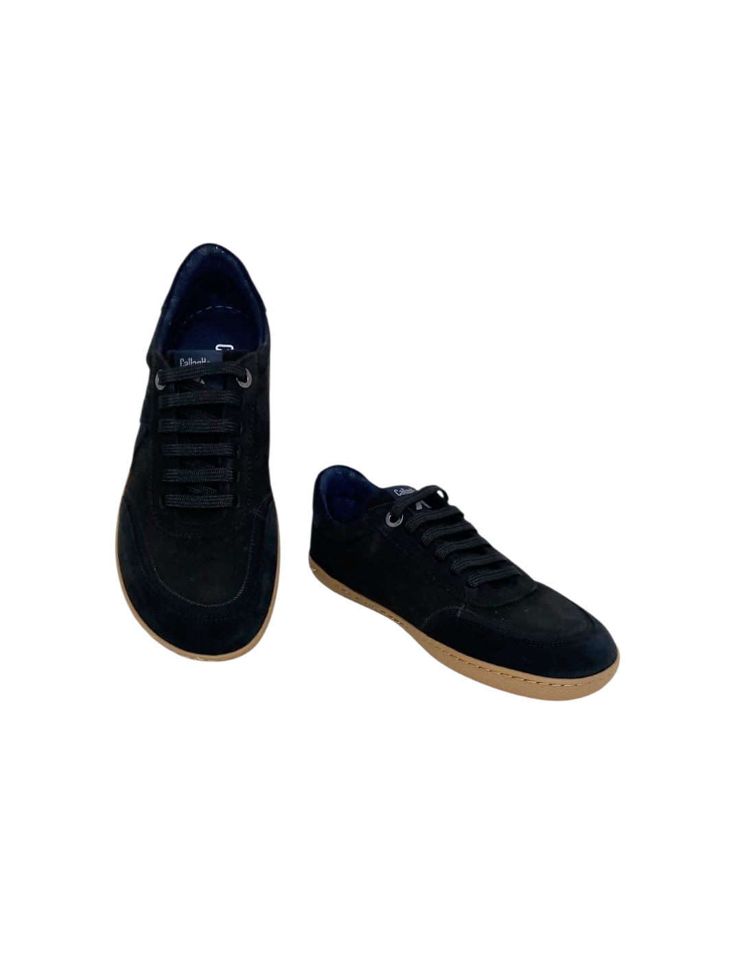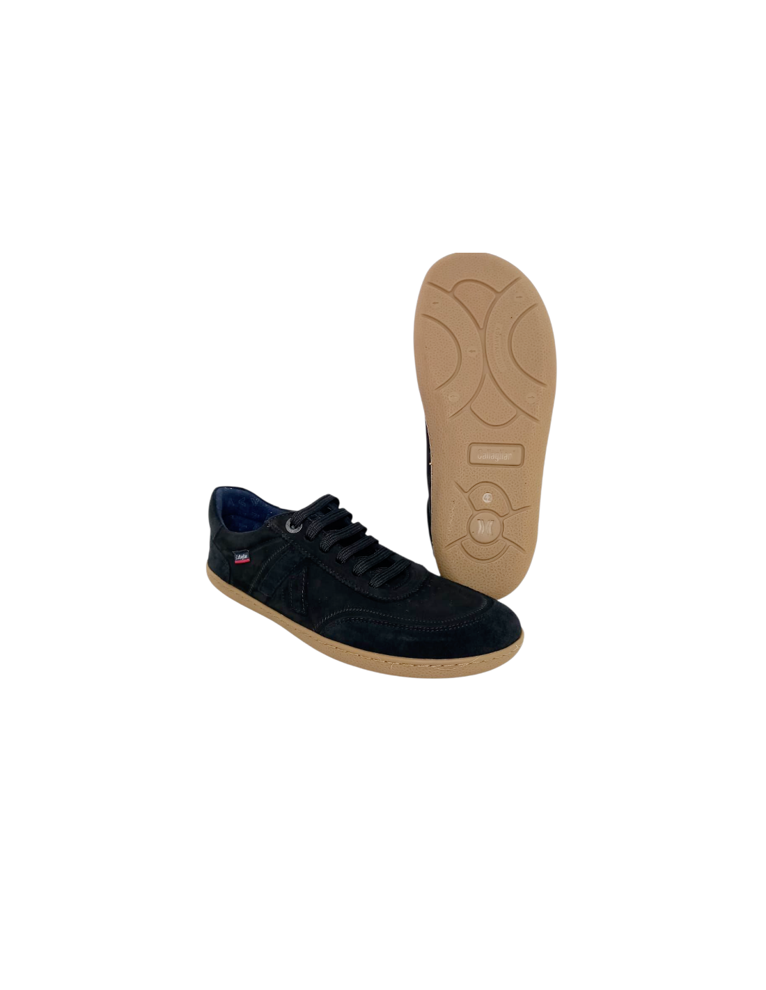 Zapato barefoot fabricado en piel nobuck de máxima calidad con aspecto aterciopelado en color negro, tratada con el sistema de hidrofugación Scotchgard 3m, que hace resbalar el agua y la suciedad. Este modelo ha sido diseñado para dar la sensación de caminar descalzo siguiendo la filosofía del calzado respetuoso, también llamado Barefoot.