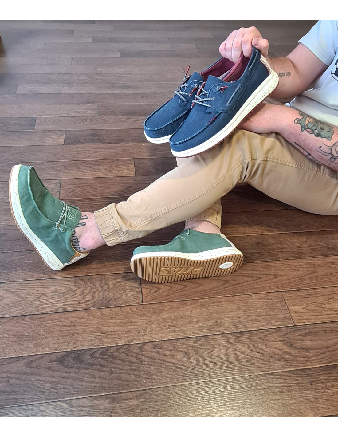 La plantilla es de piel, y además de ser extraíble, es acolchada, transpirable y antihumedad, lo que aporta gran comodidad a la zapatilla y la posibilidad de usarlas sin calcetines sin perder confort en el pie.
