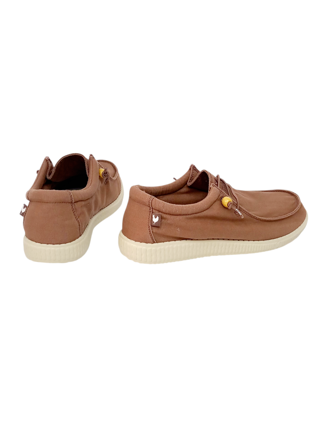 Zapatilla tipo wallabi fabricada en algodón con efecto desgastado en color marrón arcilla.