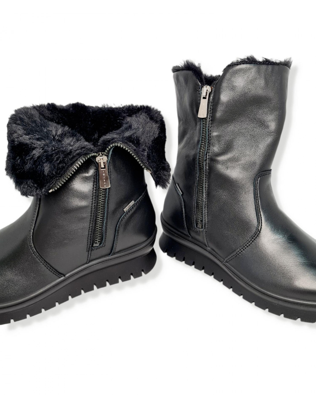 Bota en piel de primera calidad en color negro. Un modelo diseñado con GORE-TEX, garantizando transpiración e impermeabilidad, para mantener los pies secos y calentitos todo el invierno, cierre mediante cremallera exterior, con forro interior de pelo, plantilla acolchada con Memory Foam, cómodas y confortables. Suela de poliuretano, adherente, ligera y flexible, garantizando un alto grado de absorción de impactos. Cuña de 3,5 cm, plataforma delantera de 2 cm. y caña de 18 cm.