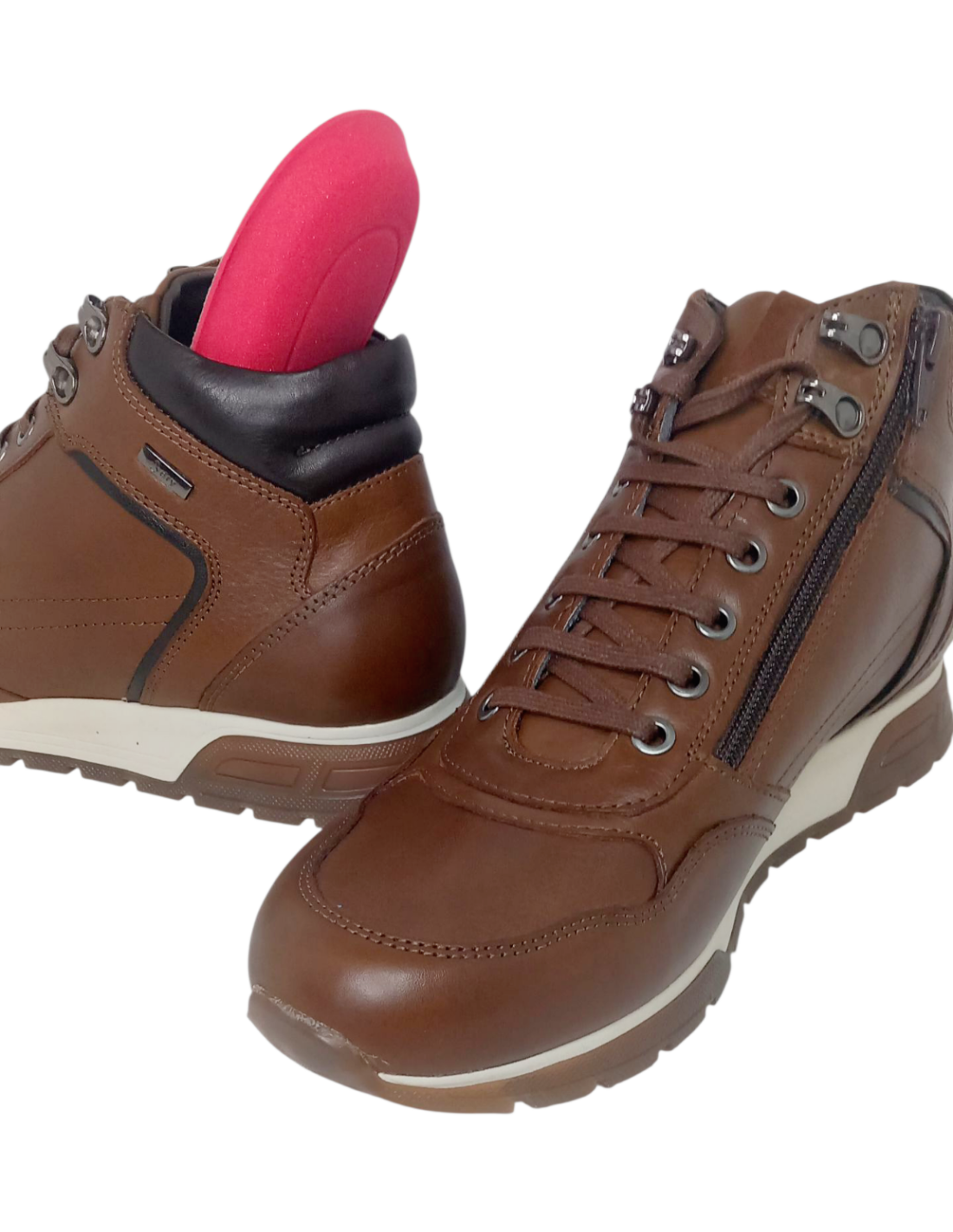 Forro combinado en piel vacuno y tejido, con membrana XDRY resistente al agua.