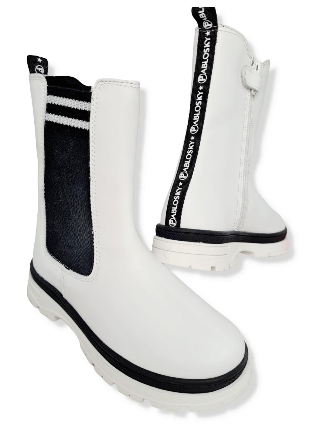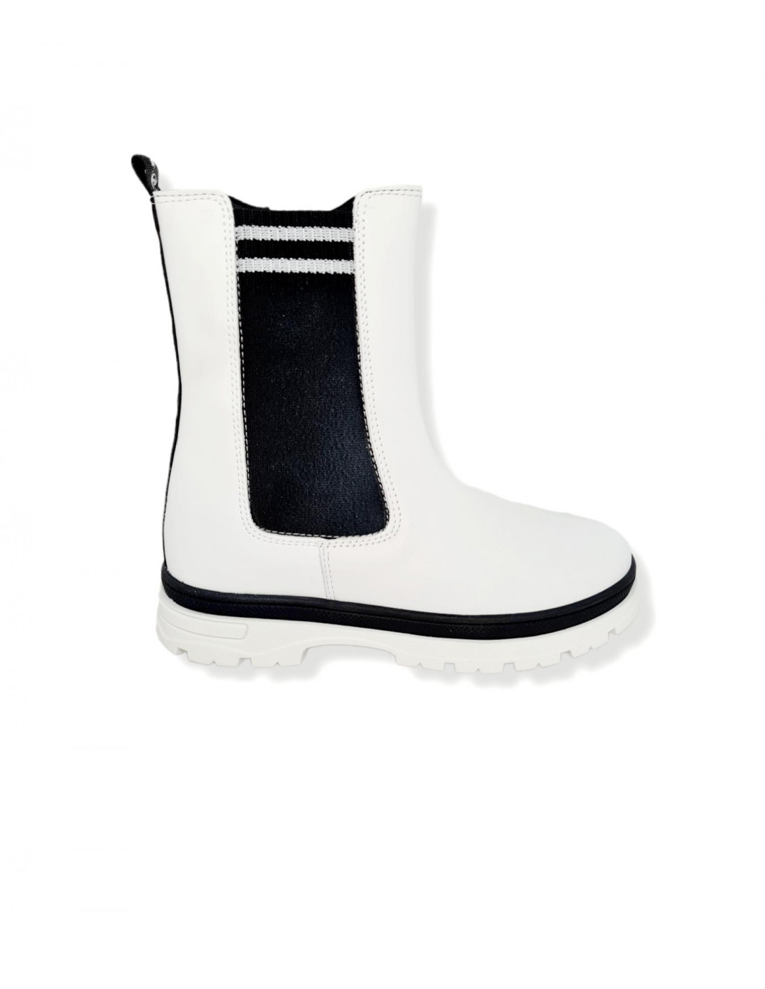 Bota en piel de primera calidad en color blanco. Forro inTech sin costuras, una microfibra 7 veces más absorbente que la piel, neutro y resistente al roce, con plantilla amortiguadora superabsorbente y antibacterias. Con piso de goma antideslizante y de alta resistencia, incorpora la tecnología SUPERFLEX, que favorece la flexión del pie, y AIRBAG amortiguador de pisada. Cierre de cremallera interior para un buen ajuste al pie y fuelle en la parte exterior en color negro y logo de la marca en la parte trasera en color negro con letras blancas.