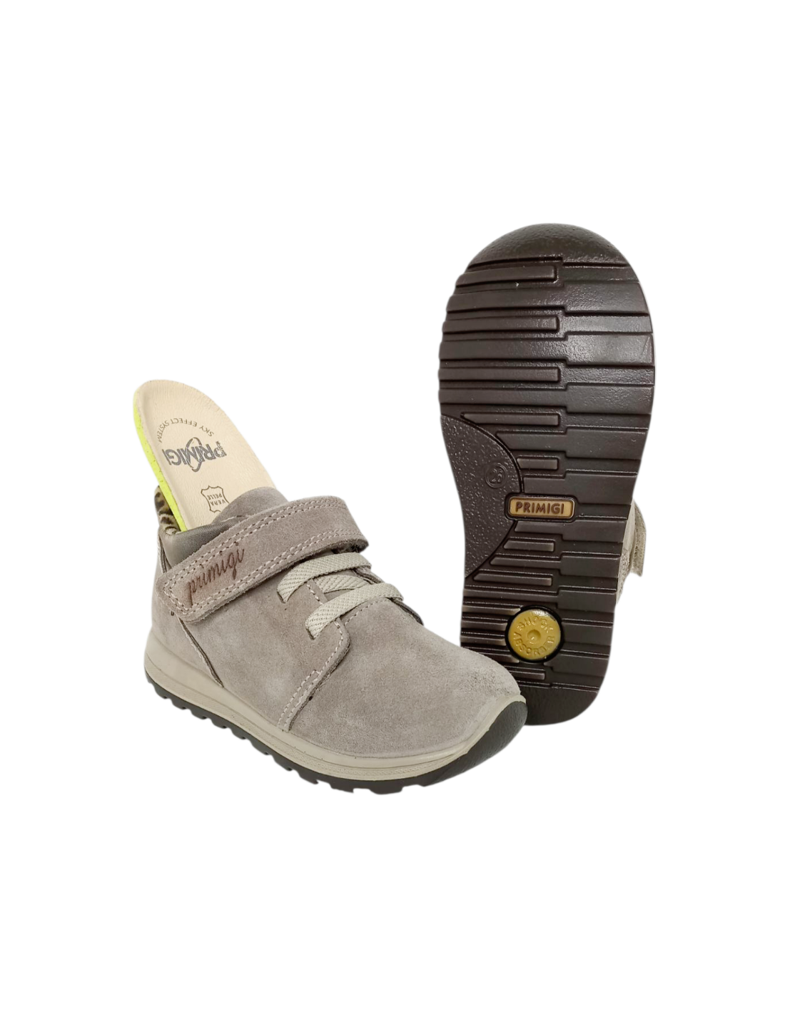 Deportivo abotinado fabricado en piel serraje suave de primera calidad en color topo con detalle de animal print de leopardo en la zona del tobillo.