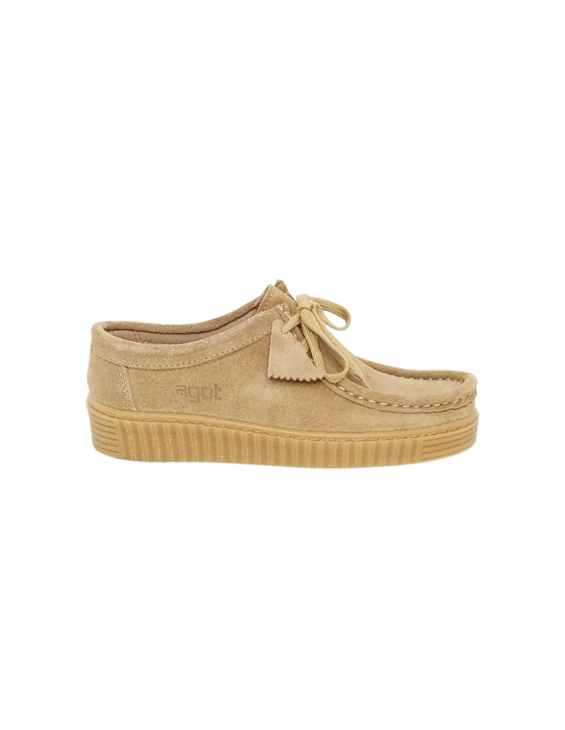 Zapato casual de estilo wallabee para mujer de la marca gallega AGOT. Disponible en tres preciosos colores, malva, verde menta y camel.