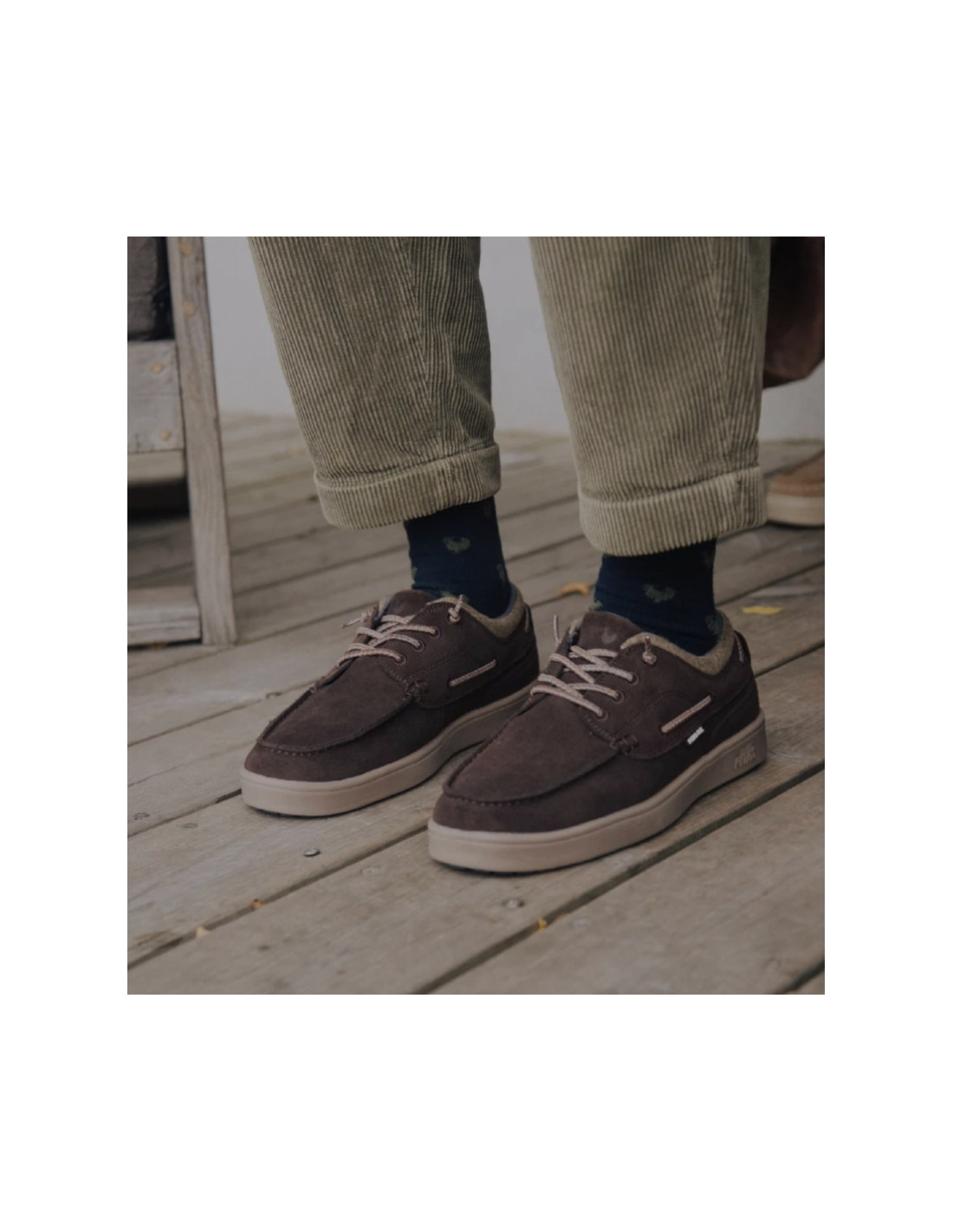 Zapato tipo wallabi fabricado en piel serraje hidrofugada repelente al agua de colores marrón y azul.