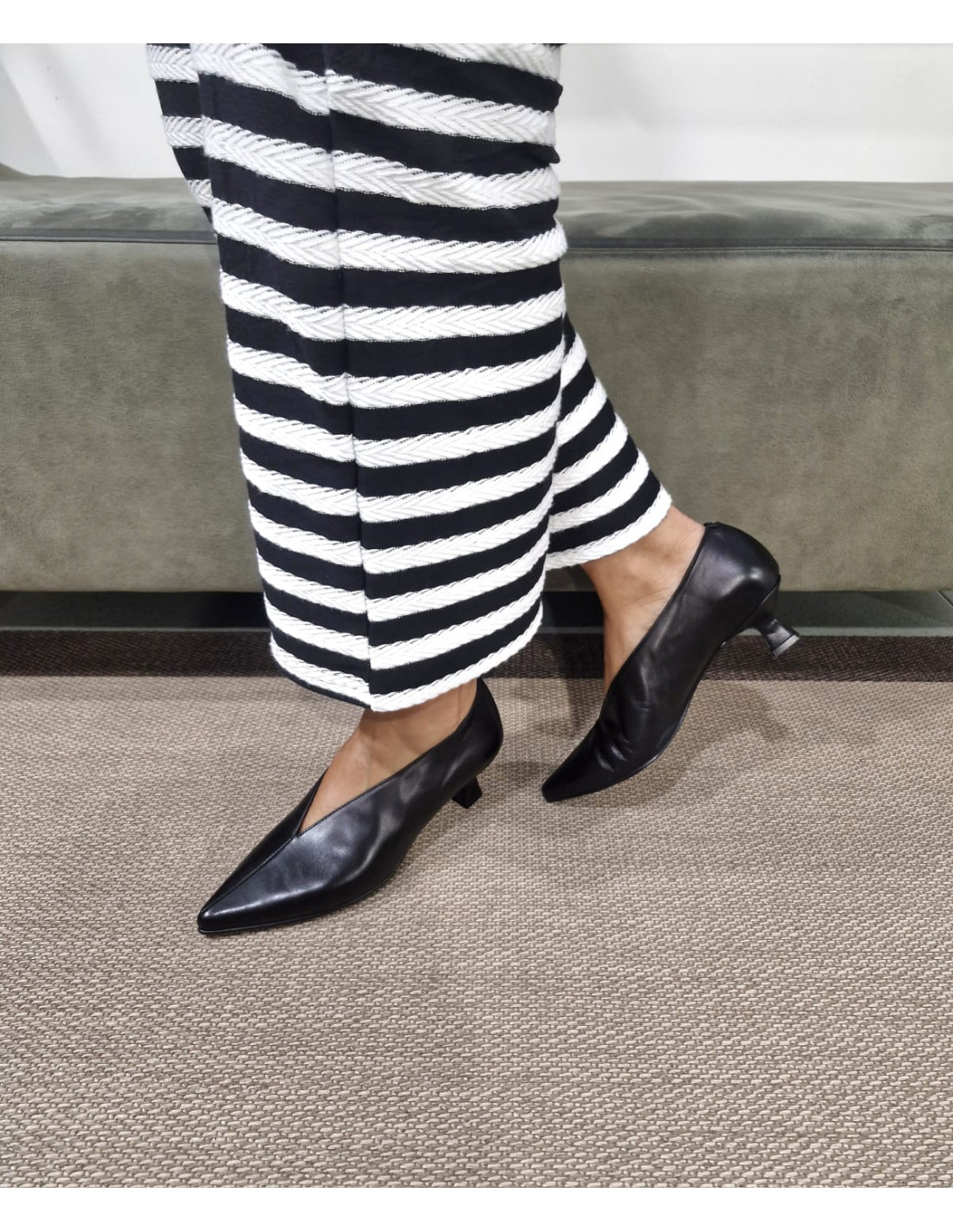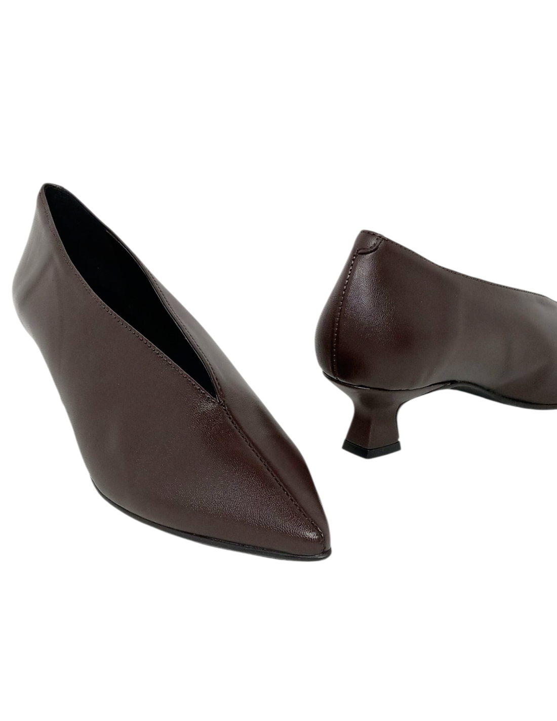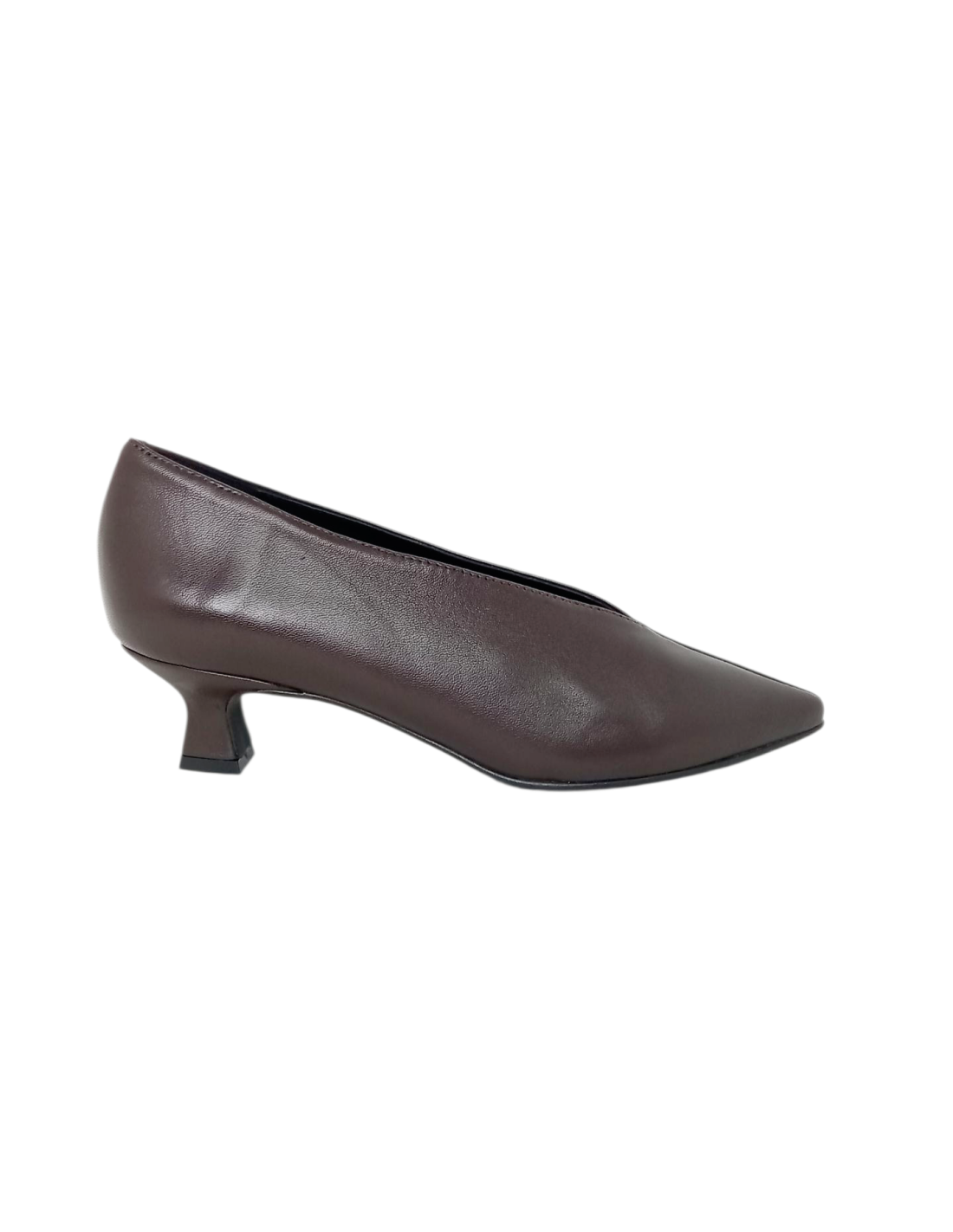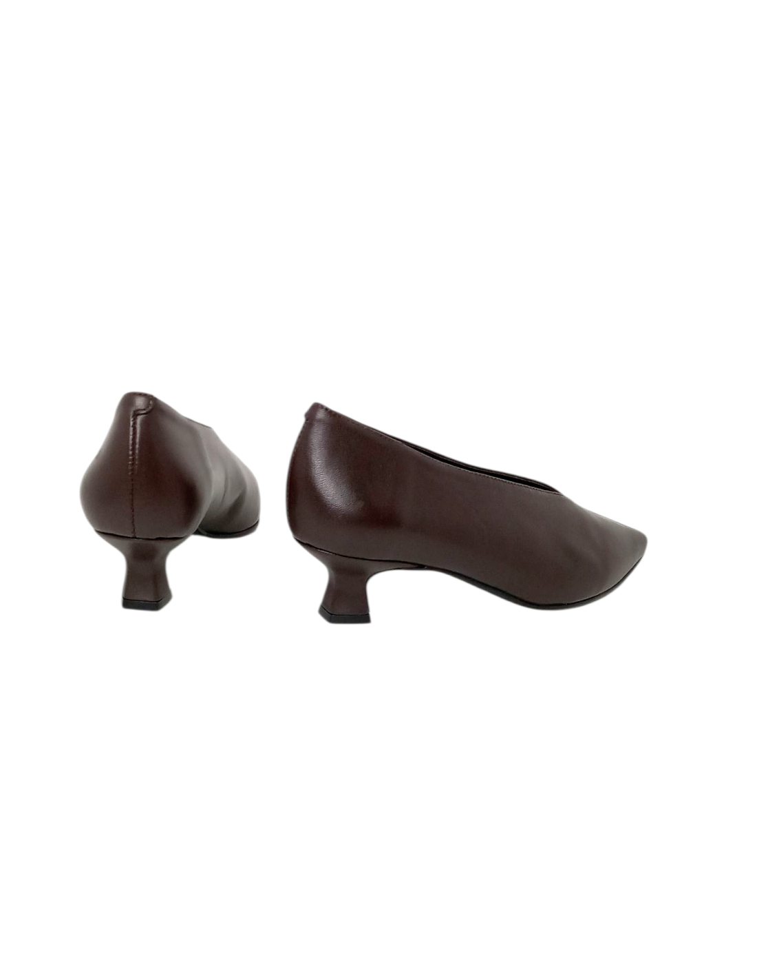 Zapato de vestir corte salón para mujer de la marca Barminton en dos combinaciones de color, negro y marrón chocolate.