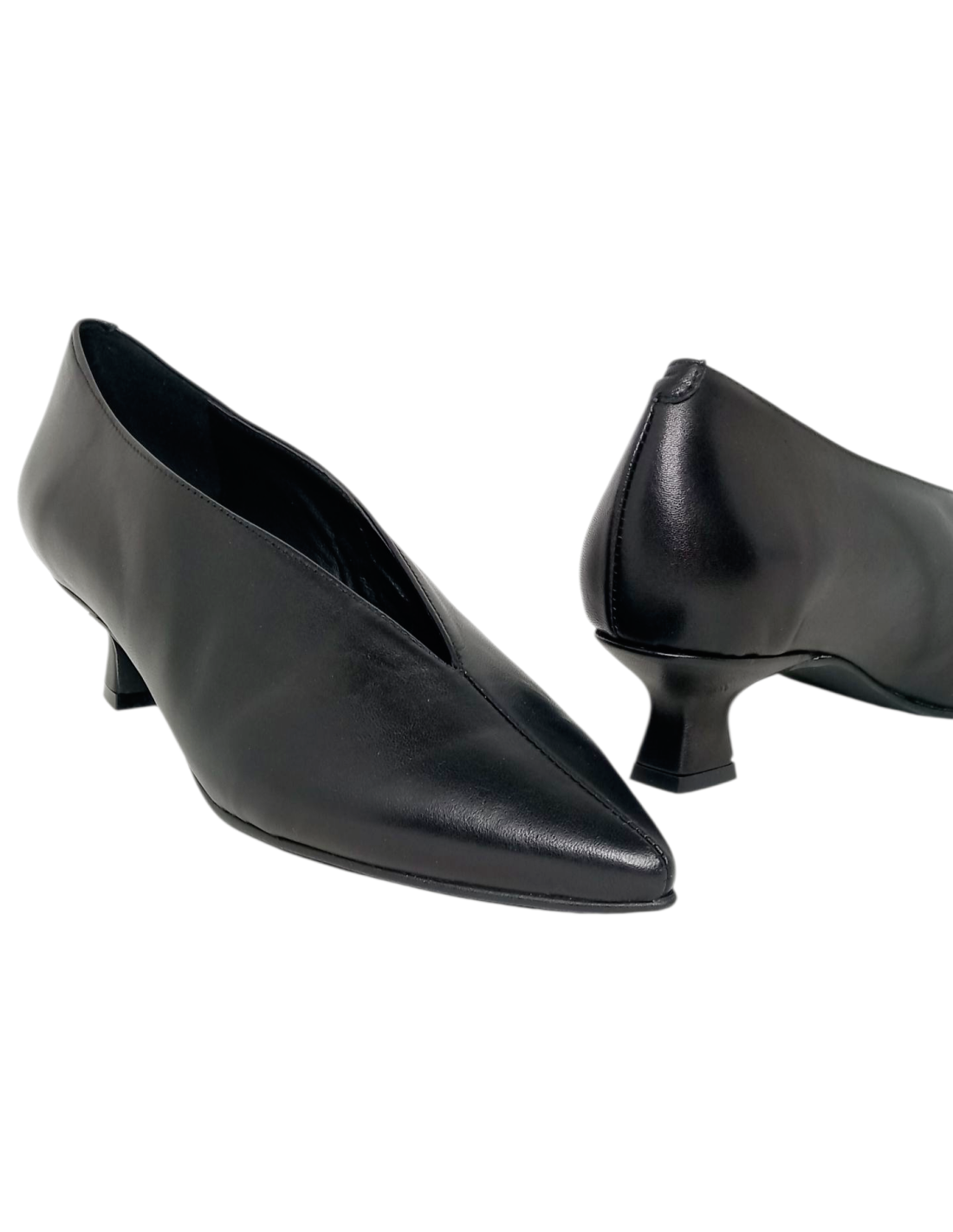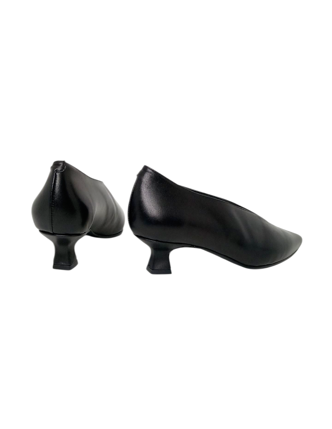 Zapato de vestir corte salón para mujer de la marca Barminton en dos combinaciones de color, negro y marrón chocolate.