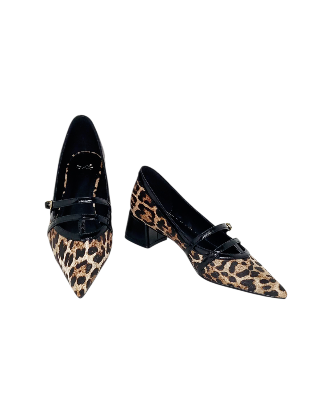 Zapato corte salón para mujer de la marca EXE en estampado animal-print, con puntera afilada y doble sistema de cierre con pulsera.