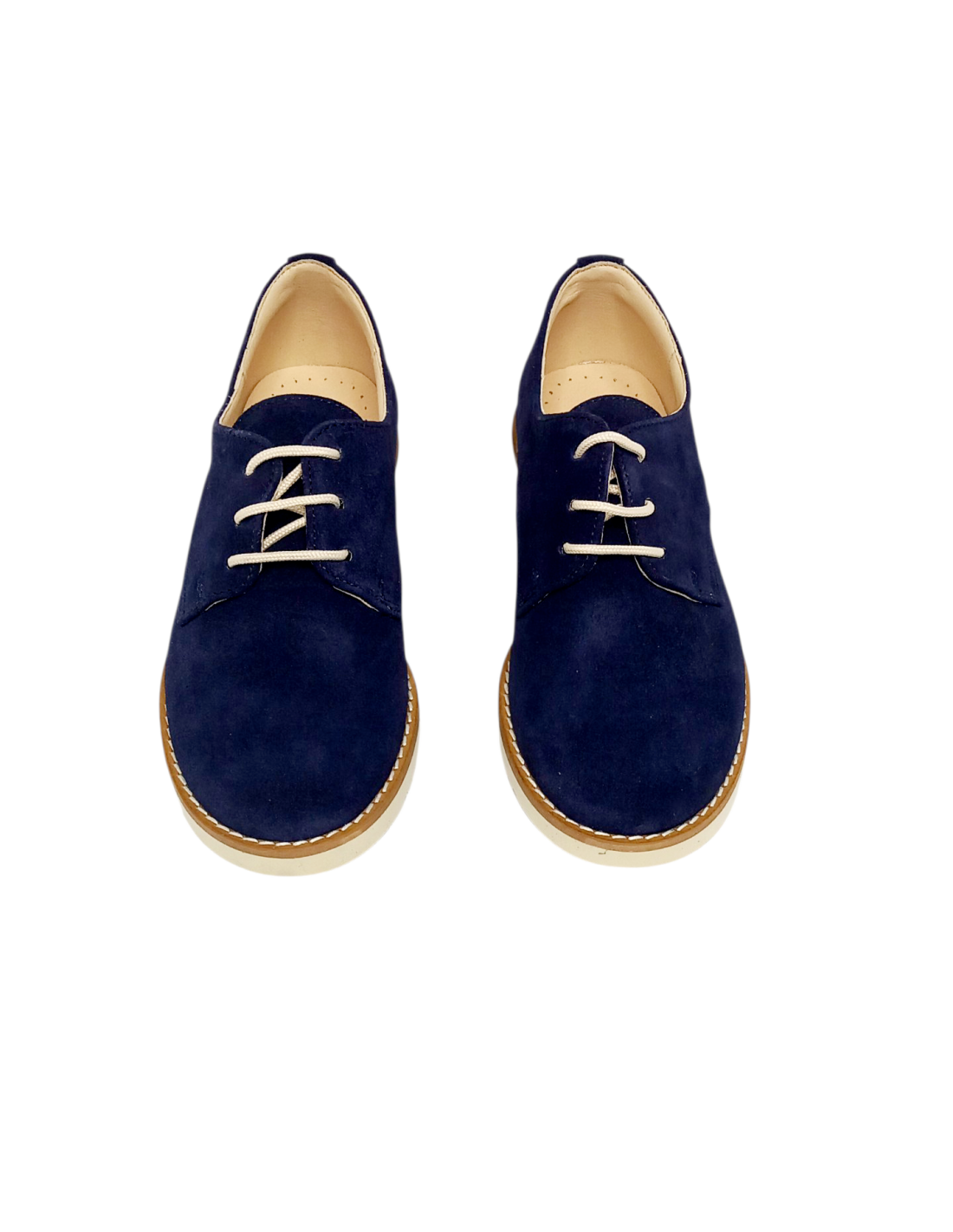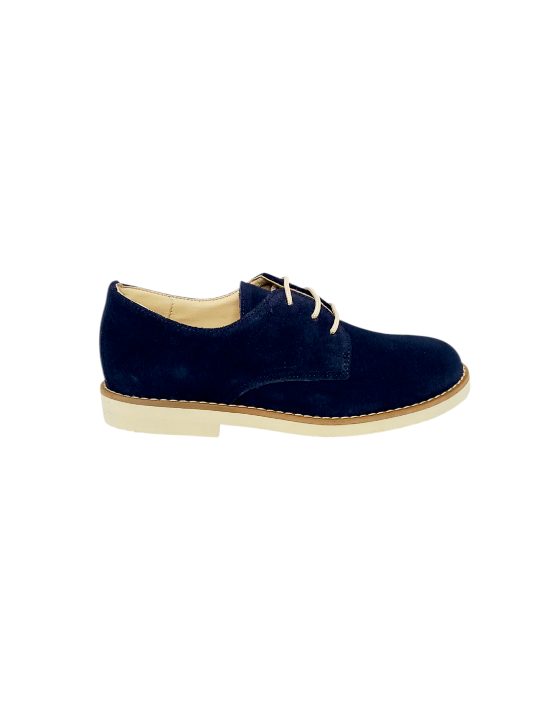 Zapato de Primera Comunión fabricado en piel serraje de color azul marino.